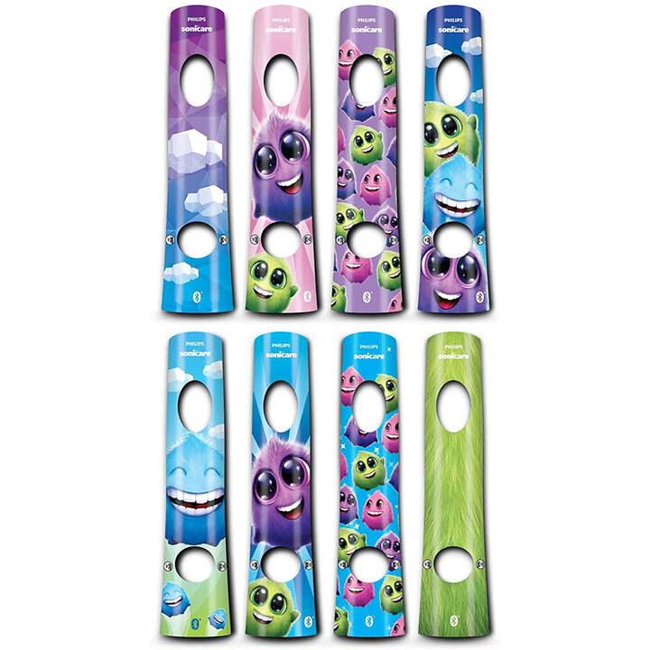 - Khi trẻ học đánh răng, công nghệ âm thanh của chúng tôi làm phần còn lại. Hành động năng động độc đáo của bàn chải đánh răng điện Philips Sonicare nhẹ nhàng và hiệu quả chạm sâu vào giữa răng và dọc theo đường viền nướu. Với hơn 500 nét mỗi giây, sức mạnh làm sạch âm thanh giúp bù đắp cho việc phát triển các kỹ thuật khi trẻ phát triển tốt hơn khi đánh răng. Công nghệ này giúp bàn chải đánh răng Philips Sonicare For Kids hiệu quả hơn tới 75% so với bàn chải đánh răng thủ công, giúp kiểm tra thành công hơn. Nhãn dán hoán đổi cho nhau để tạo hứng thú cho trẻ - Với tám thiết kế có thể hoán đổi cho nhau bên trong mỗi hộp bàn chải đánh răng, trẻ em có thể cho bàn chải của mình một diện mạo mới bao nhiêu lần tùy ý. Kết hợp với cơ hội tùy chỉnh giao diện của nhân vật ứng dụng của họ, trải nghiệm Philips Sonicare For Kids là tất cả về việc làm cho việc chăm sóc răng miệng hiệu quả trở nên hấp dẫn và vui vẻ mọi lúc.