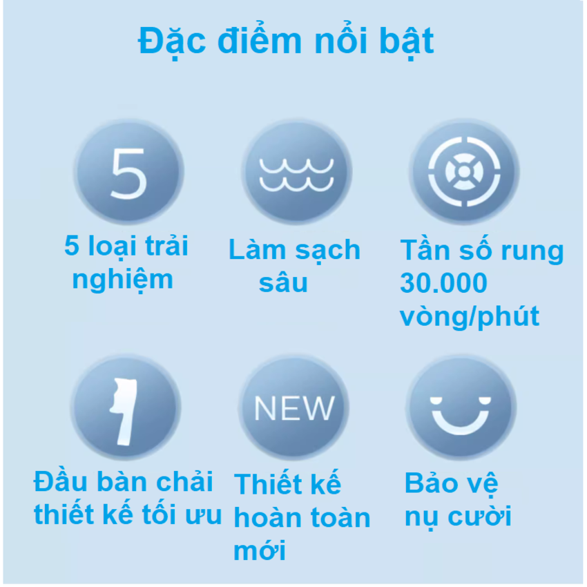 - Tích hợp 5 chế độ: Làm sạch, Làm mới, Làm sáng, Chăm sóc nướu và Chế độ Nhạy cảm
