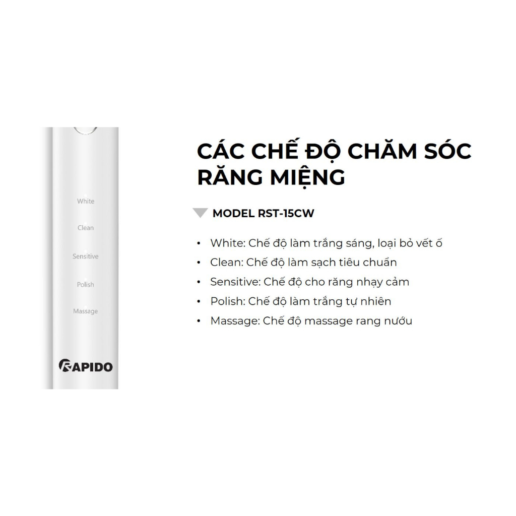 RAPIDO RST-15CW RST-15WB - Hướng dẫn sử dụng Bàn chải đánh răng điện - VUATHIETBI.COM