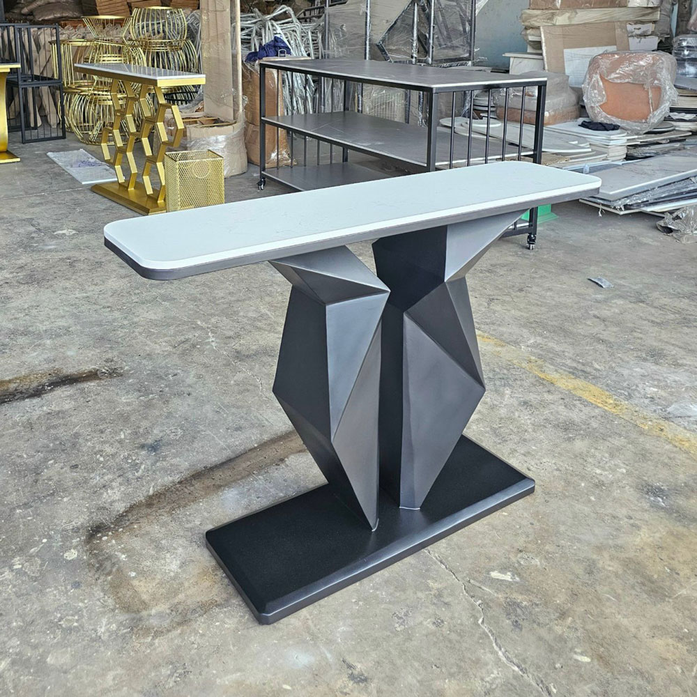 Bàn Console CSTCT064 có phần chân sắt được gia công theo hình dáng đa giác rất độc đáo và ấn tượng, thích hợp để trong các không gian sang trọng, hiện đại. Mặt bàn sử dụng chất liệu đá vân mây đẹp mắt. Bạn có thể đặt để đặt lọ hoa, sách trang trí hoặc các vật dụng trang trí khác để tạo nên một không gian trang trí ấn tượng. THÔNG TIN CHI TIẾT SẢN PHẨM :