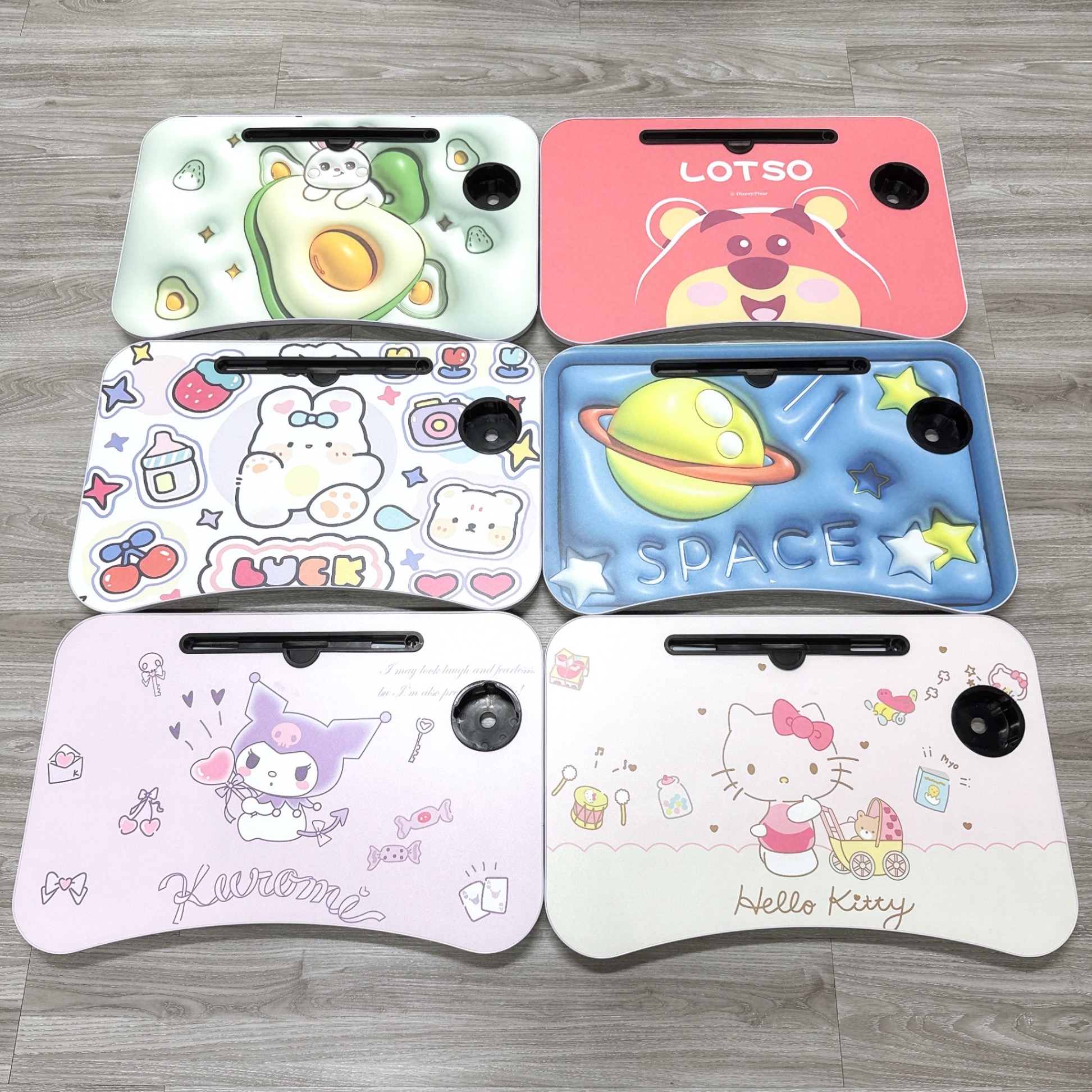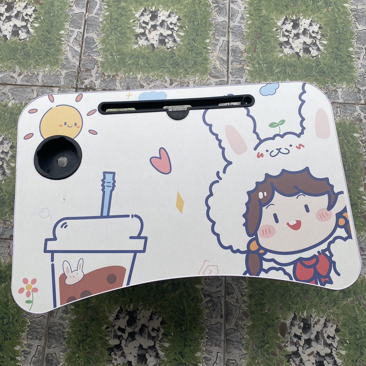 Bàn học để laptop gấp gọn tiện lợi di chuyển có khe để ipad điện thoại , khay đựng cốc.