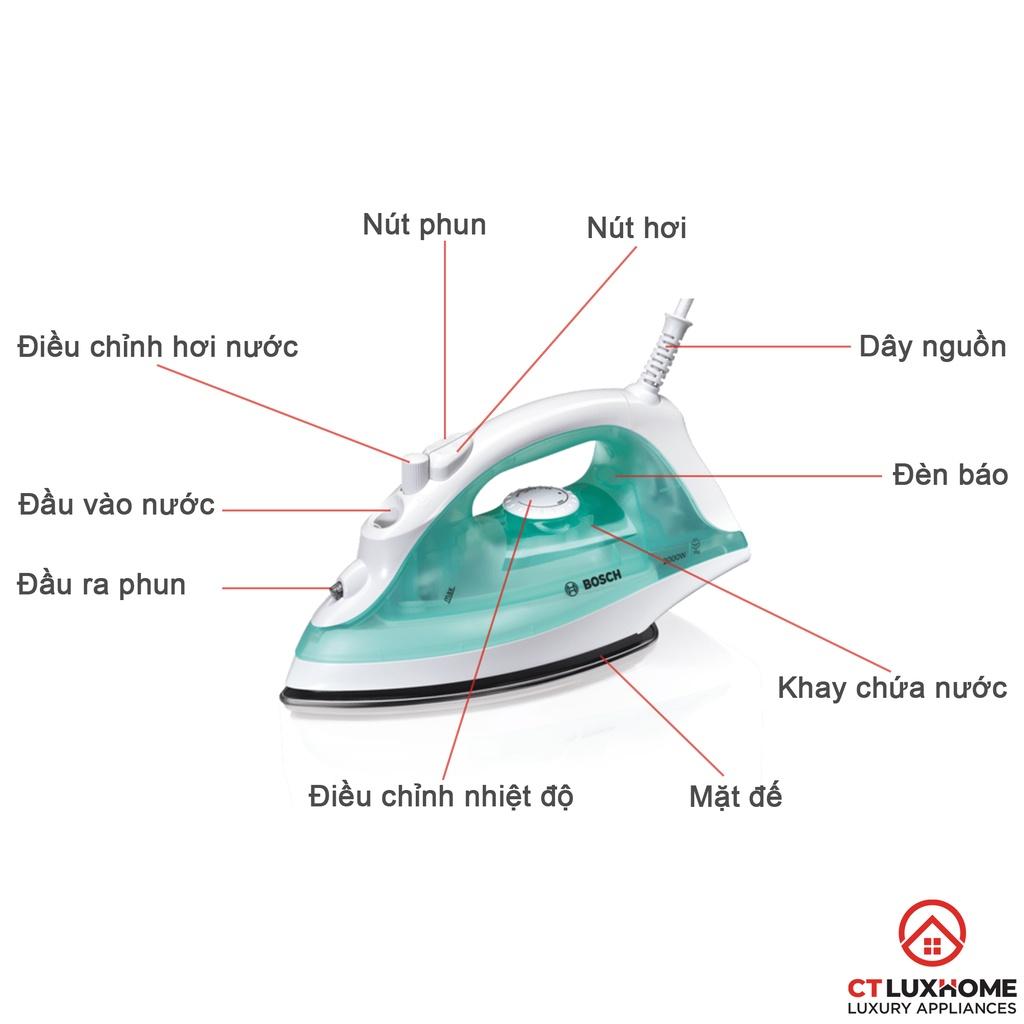 ✨Bàn là hơi nước, Bàn ủi hơi nước Bosch TDA2301GB 2000W, 50/60Hz, Hơi nước 20g/phút [Hàng chính hãng]