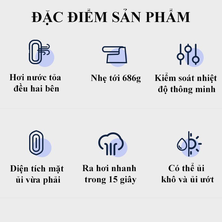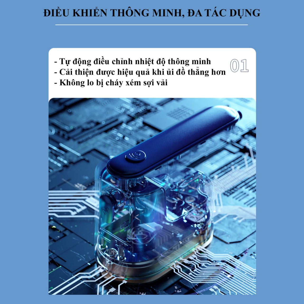 THÔNG TIN SẢN PHẨM - Thiết kế nhỏ gọn, dễ dàng di chuyển - Công suất: 2500 - 2985W, giúp ủi nhanh chóng - Dung tích bình chứa nước: 1L (có thể tháo rời, tiện