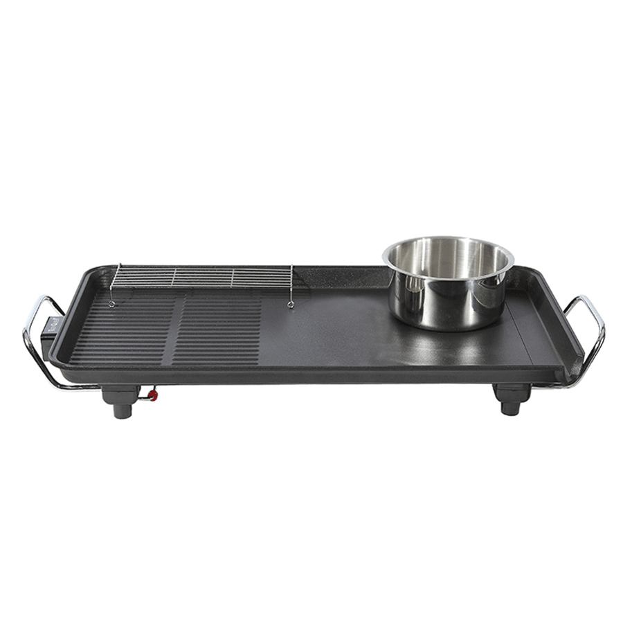 THỐNG SỐ KĨ THUẬT Công suất 1800W Điện áp 220VAC Chất liệu Nhôm phun sơn chống dính Kích thước sản phẩm 565x320x80mm Trọng lượng sản phẩm 2.2 kg Nồi đa năng 2 trong 1: Nướng