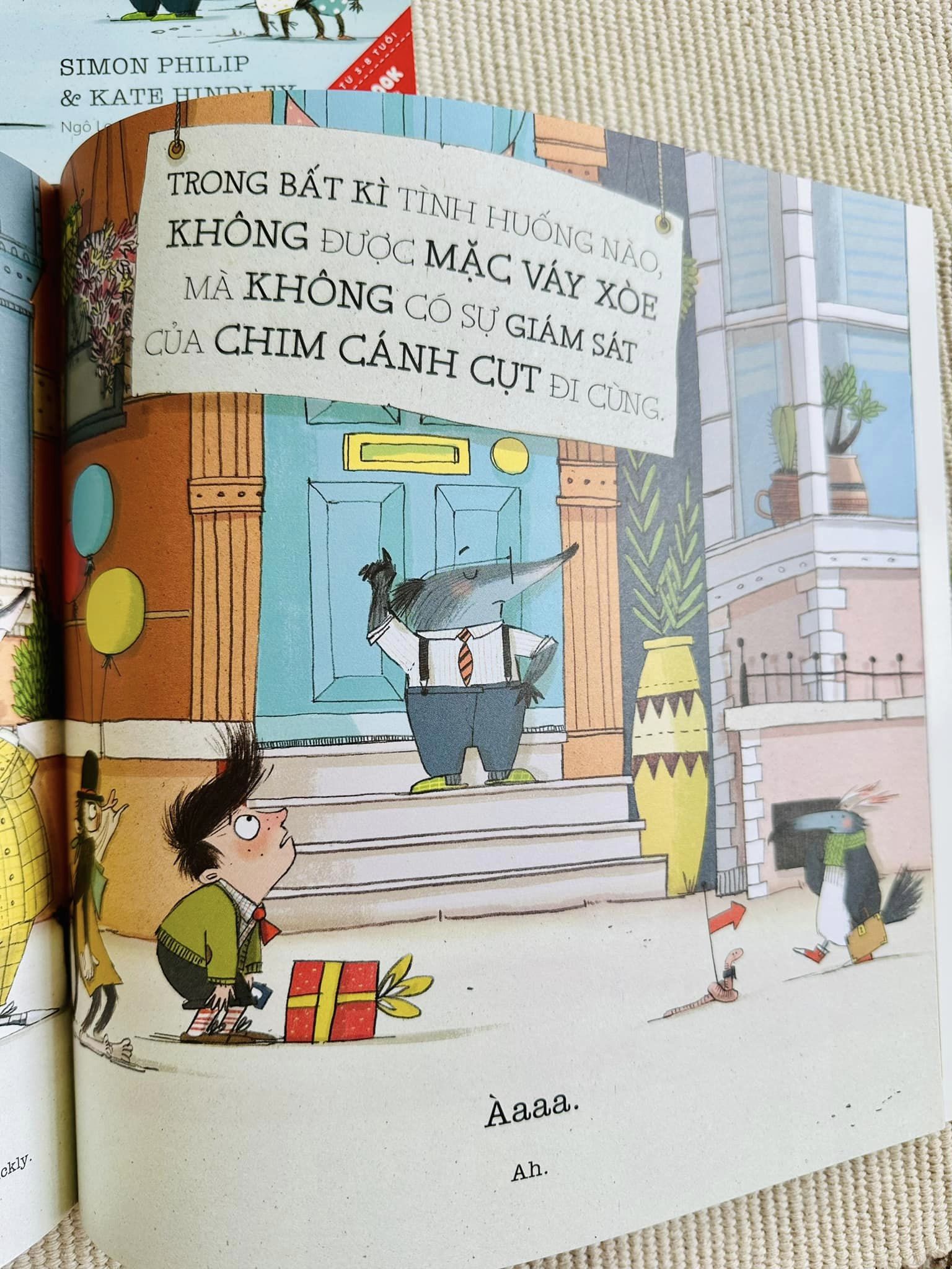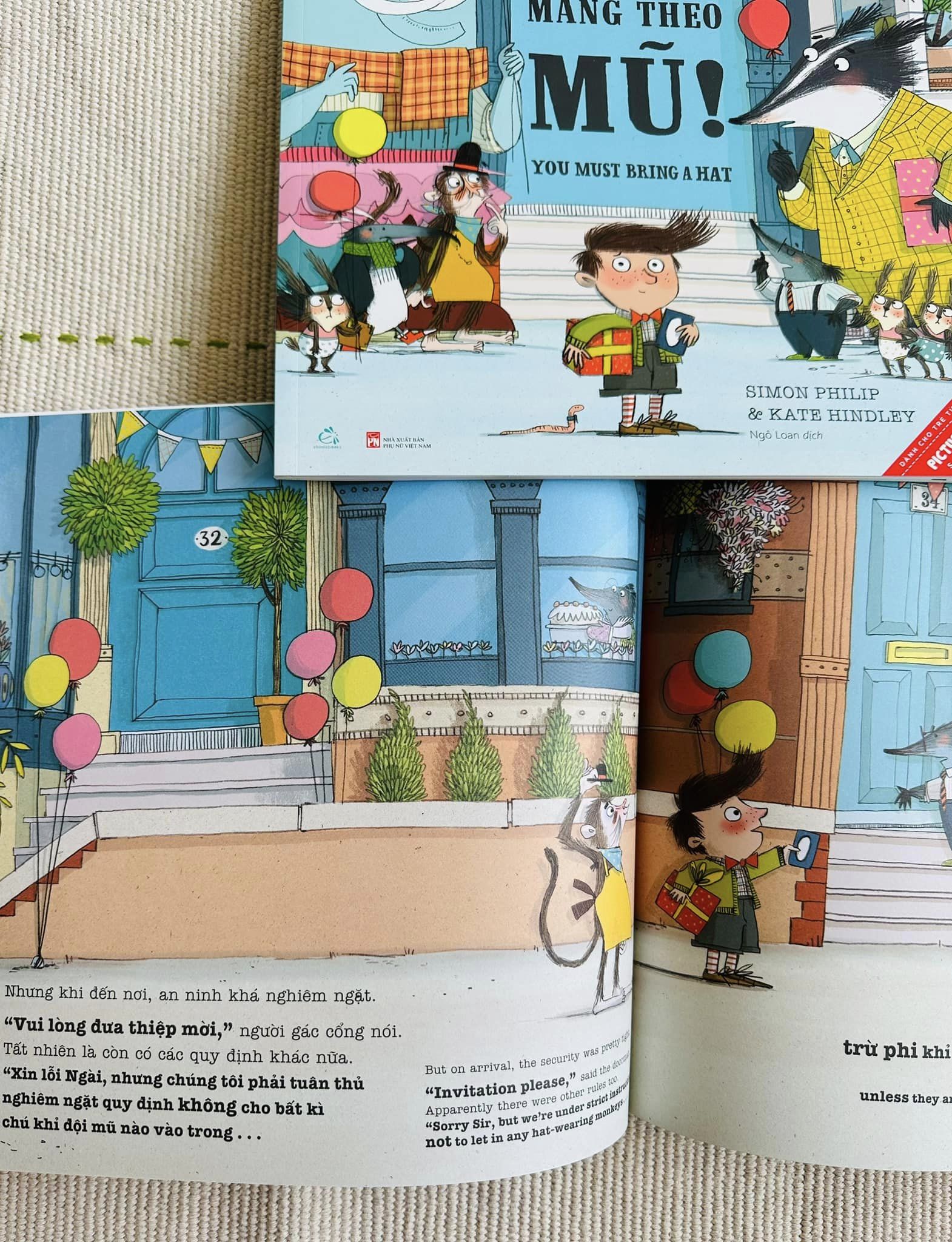 Làm thế nào để đến bữa tiệc này khi bạn không có cái mũ nào cả? Và câu bé trong câu chuyện này đã tìm ra một chiếc mũ, có điều nó nằm trên đầu một chú khỉ kiên quyết không cho mượn. Và rồi cậu bé ấy quyết định mang chú khỉ đi cùng đến bữa tiệc. Nhưng một loạt những rắc rối xảy ra ngay sau đó, hàng loạt những quy định kì quặc không hề được viết trong giấy mời ngăn cản cậu và các bạn tham gia bữa tiệc.   Vậy cuối cùng bữa tiệc đó còn có những quy định nào khác? Cậu bé có tham gia được bữa tiệc hay không? Hãy cùng đọc câu chuyện ngớ ngẩn nhưng thú vị một cách kì quặc “Bạn phải mang theo mũ” của tác giả Simon Philip và Kate Hindley. Và hãy chờ xem, bé sẽ khám phá ra điều bất ngờ độc đáo nào trong câu chuyện này nhé!