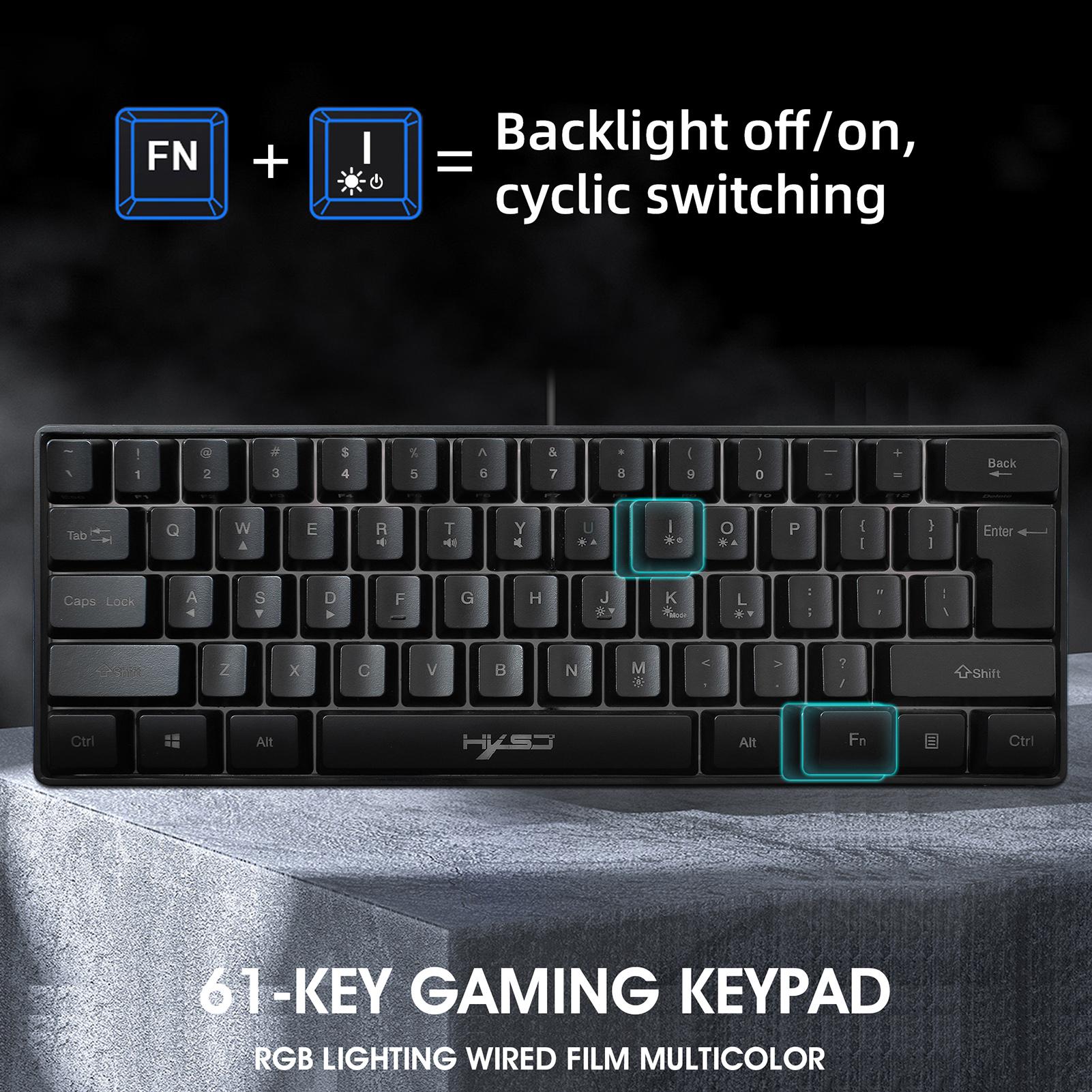 Feature: Support 6/N-key rollover. Press Control and Caps Lock to change between 6-key rollover and N-key Rollover.Easily change to fulfil your needs in different games. Compact keyboard design. With only 61 keys, it performs the