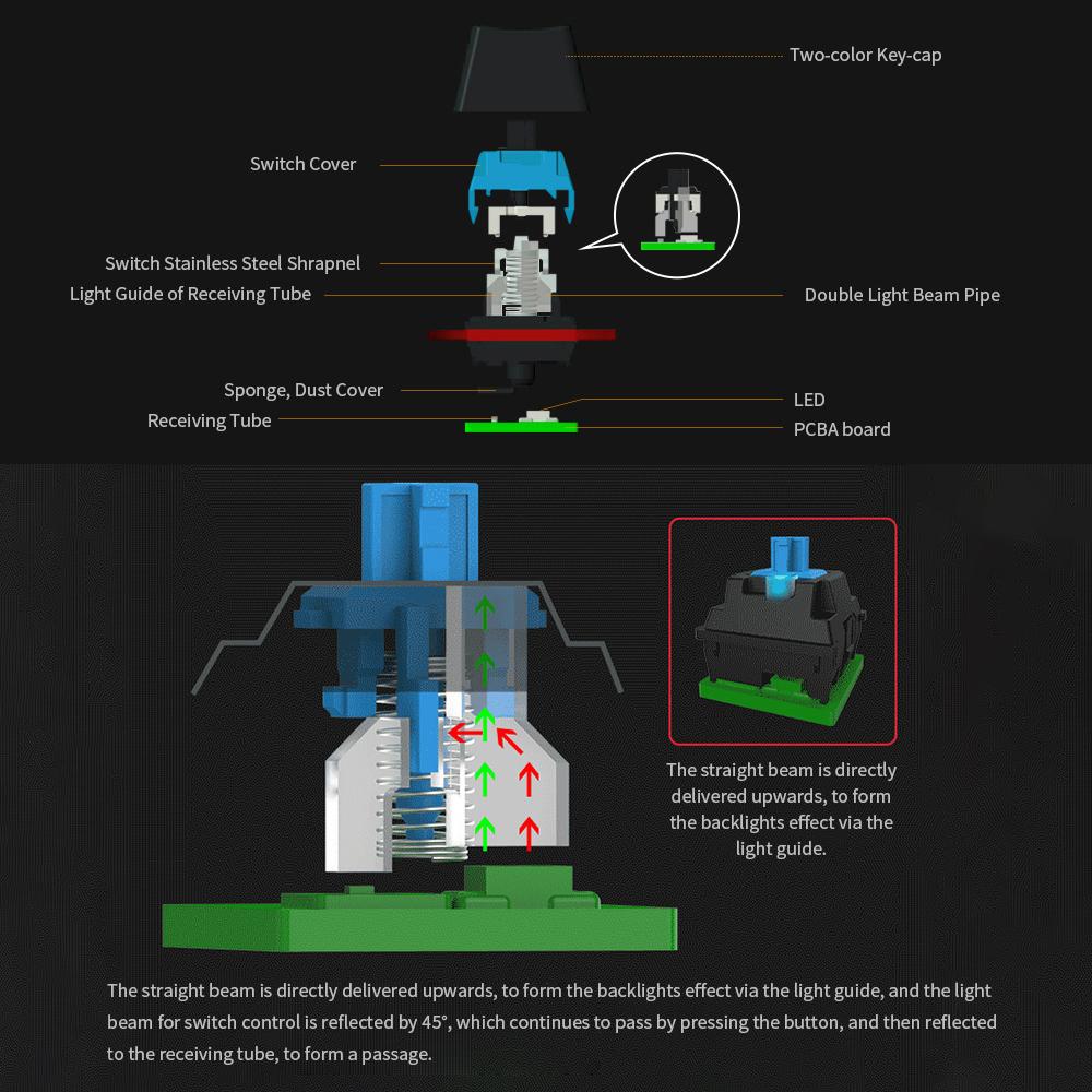 Keycaps are designed in floating ladder shape for an instantaneous response, which provides fast trigger and easy cleaning up. Now you can command faster than ever.