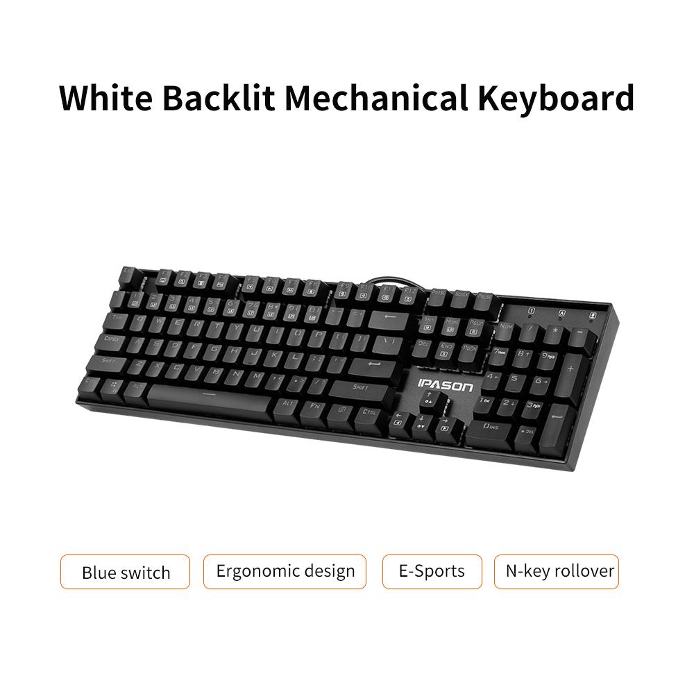 IPASON Mechanical Keyboard is designed for game player. 104 N-key rolloverkey with backlit gives you ultimate game experience. Mechanical blue switchbrings quick response and let you enjoy smooth game playing.