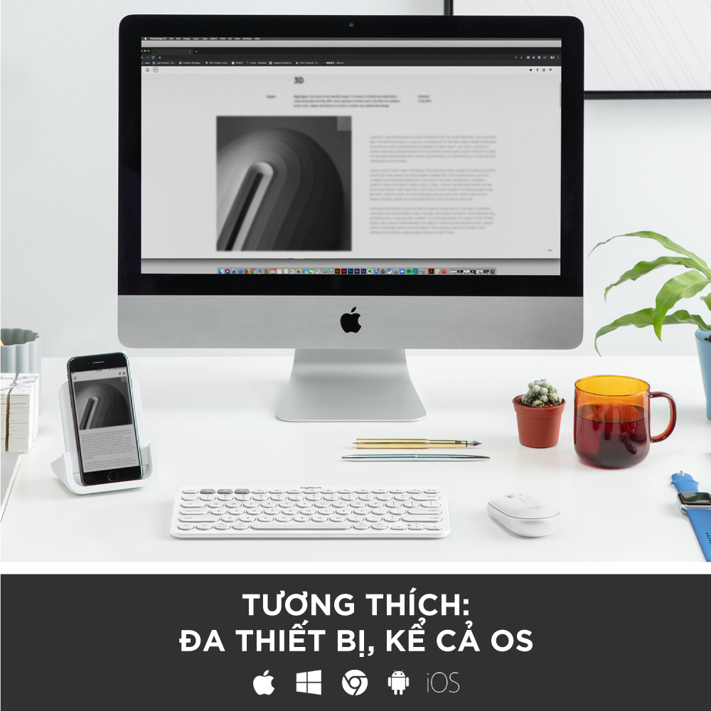 Đa nền tảng. Đa thiết bị. Bàn phím K380 Multi-Device kết nốiBluetooth với tất cả các thiết bị có hỗ trợ bàn phím ngoài, bạn có thể làm việc trên bất kỳ nền tảng Windows, Mac, Chrome OS, Android, iOS và cả Apple TV.