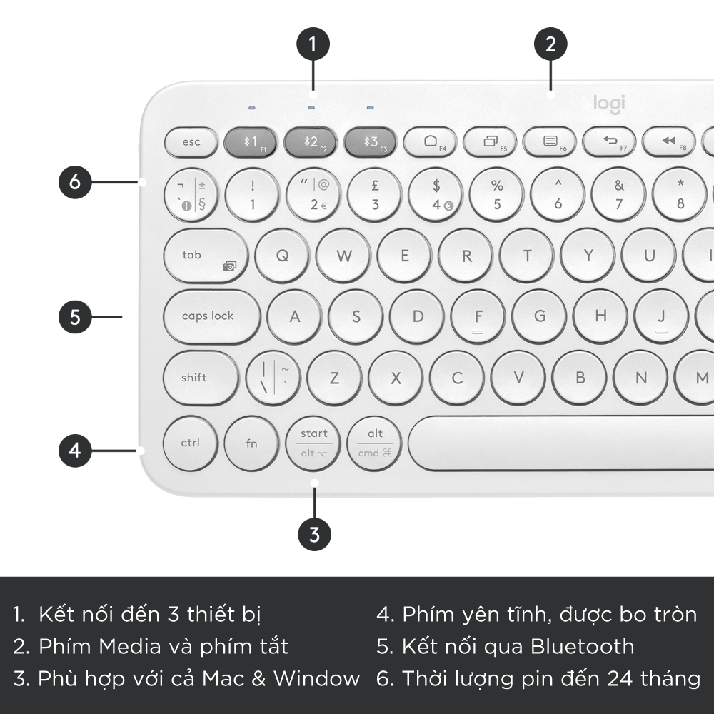 Bàn phím không dây Bluetooth Logitech K380 - Kết nối 3 thiết bị, giảm ồn, gọn nhẹ dễ mang đi, phù hợp Mac/ PC/ Laptop/ Điện thoại