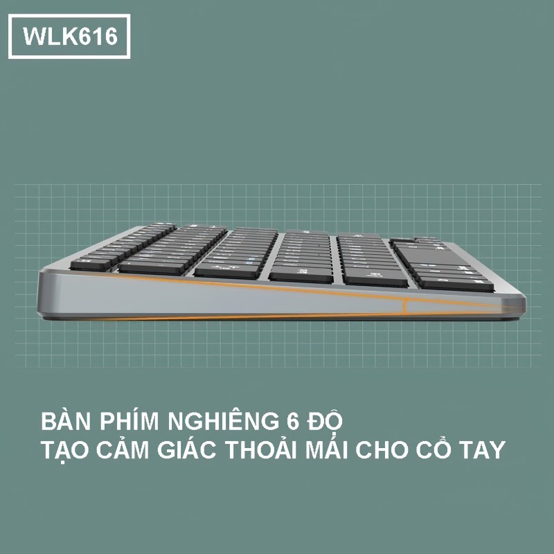 THÔNG SỐ KỸ THUẬT: Thiết kế fullsize thoải mái, chống tràn hiệu quả Kết nối không dây 2.4GHz Thời lượng pin lên đến 12 tháng Tương thích với Window/Mac ĐẶC ĐIỂM NỔI BẬT: Bàn phím
