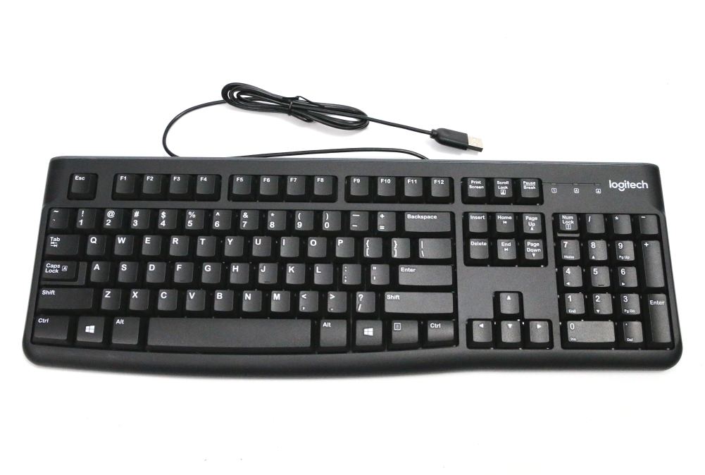 Bàn phím Logitech K120 USB Bàn tay của bạn sẽ tận hưởng những phím bấm thấp, yên tĩnh và bố trí phím tiêu chuẩn với đầy đủ kích thước F-phím và phím số. Với bàn phím Logitech