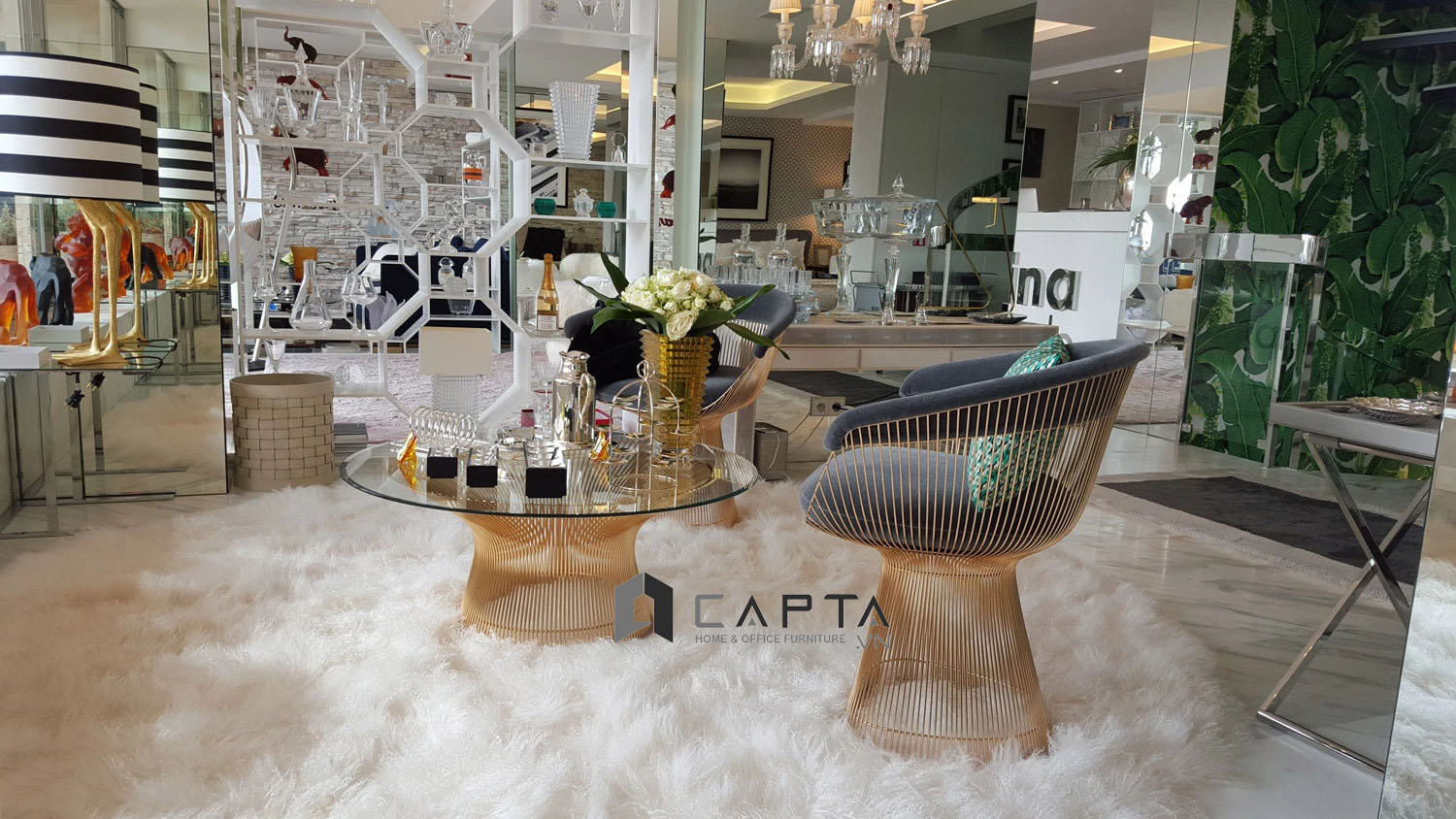 Thiết kế chân bàn hình giỏ lồng độc đáo thêm phần mạ vàng sang trọng hứa hẹn là điểm nhấn cho không gian phòng khách nhà bạn.
