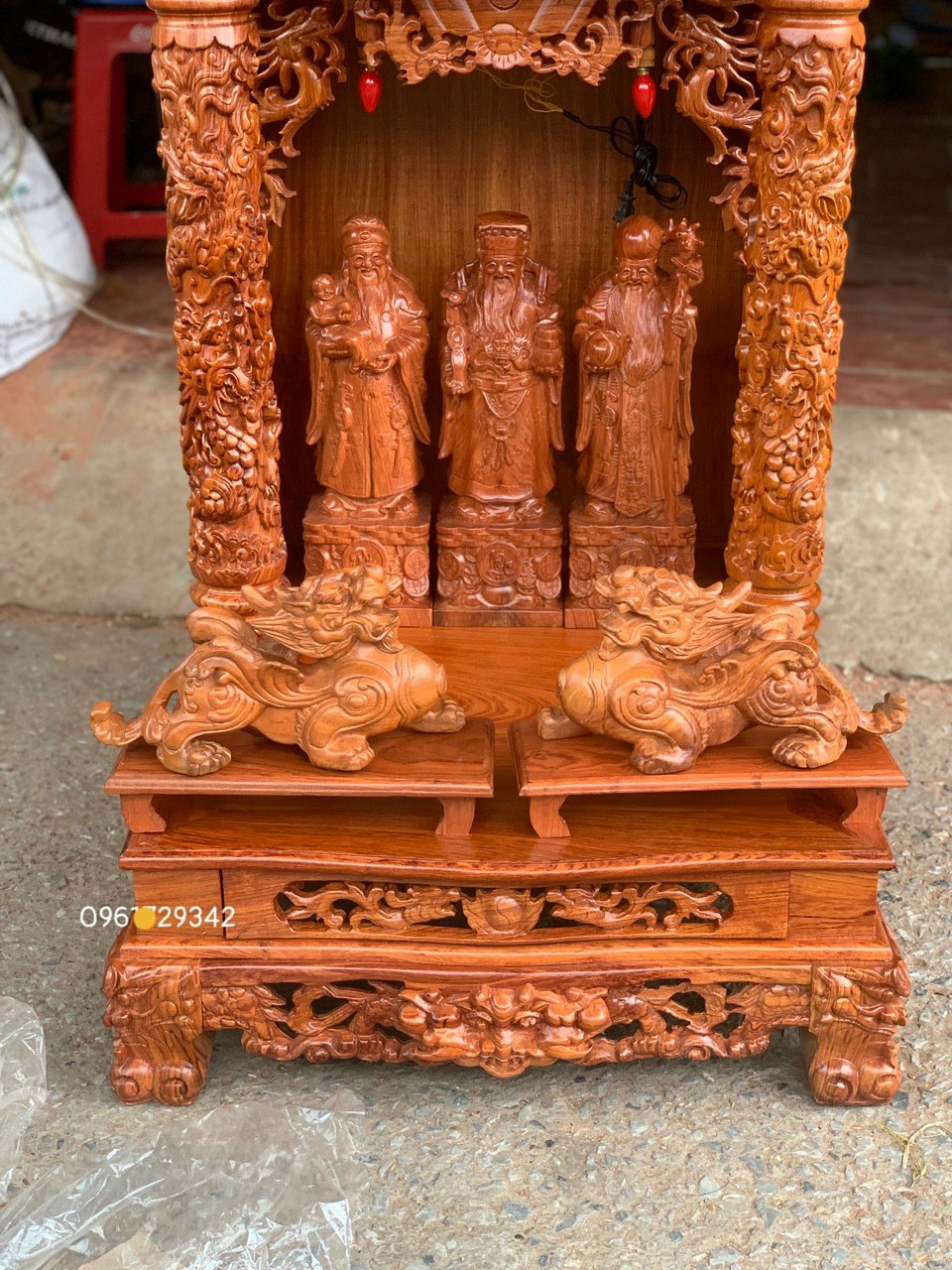 Khách Hà Nội Đặt Cặp Đôi Bàn Thờ Thần Tài Ông Địa Gỗ Hương Đá (Gõ Đỏ) Tại Đồ Gỗ Đẹp Trọng Minh
