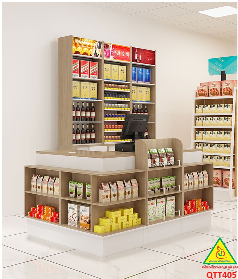 6. Tối ưu hóa quy trình giao dịch: Kết hợp bàn tính tiền và quầy trưng bày giúp rút ngắn quãng đường di chuyển từ việc chọn sản phẩm đến thanh toán, từ đó làm giảm thời gian xếp hàng và tăng tốc độ giao dịch.