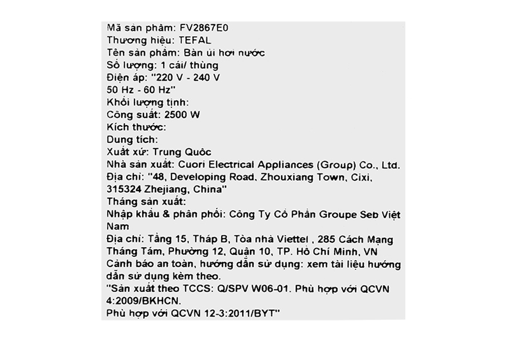 - Thương hiệu Tefal - Pháp, sản xuất tại Trung Quốc. Bàn ủi hơi nước Tefal FV2867E0 2500W kiểu dáng hiện đại, tinh tế, ủi êm với mặt đế Ceramic chống dính, công suất 2500W gia nhiệt nhanh giúp tiết kiệm thời gian ủi đồ, tự động ngắt điện giúp bảo vệ cho thiết bị và người dùng. Thiết kế của sản phẩm - Bàn ủi hơi nước Tefal kiểu dáng hiện đại, màu sắc đẹp mắt, nhỏ gọn dễ cầm nắm khi ủi đồ. - Bàn ủi hơi nước mũi nhọn giúp len lỏi tốt vào các vùng ủi hẹp như cổ áo, hai hàng cúc, nách áo, để làm phẳng hiệu quả.