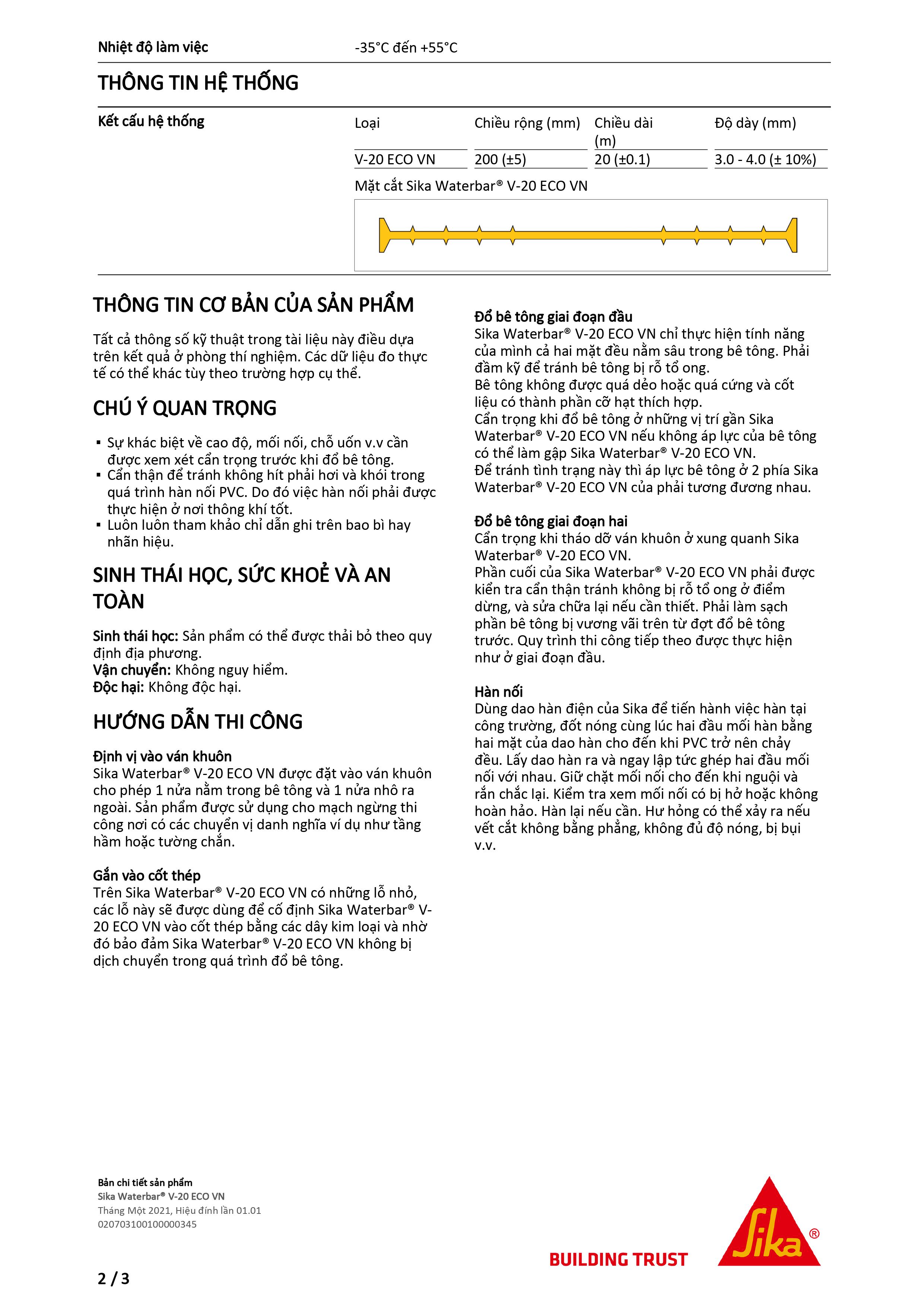 HƯỚNG DẪN THI CÔNG SIKA WATERBAR V-20 ECO VN