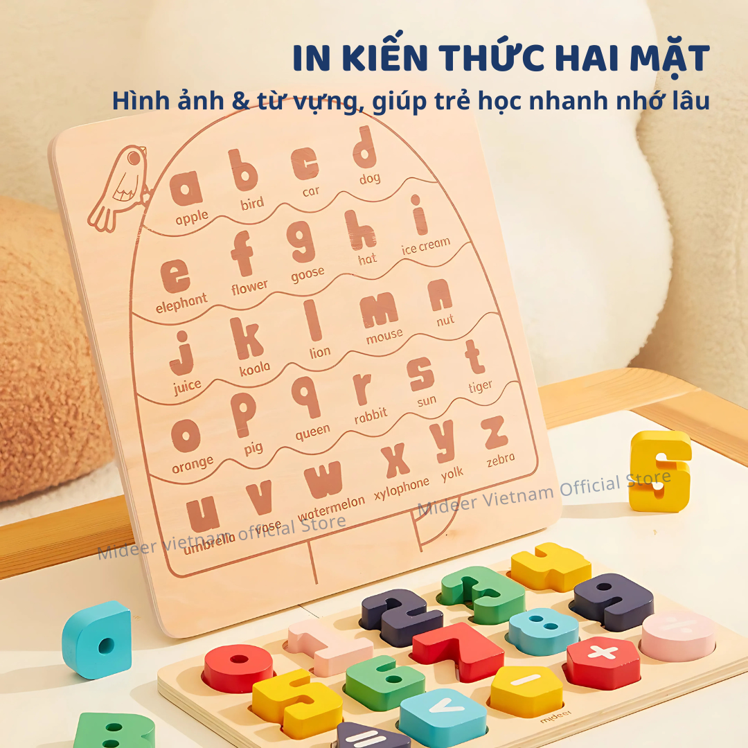 CHÀO MỪNG BẠN ĐẾN VỚI MIDEER VIETNAM HÀNG SẴN SHIP HỎA TỐC, BẢO HÀNH CHÍNH HÃNG ————————————— Bảng ghép hình chữ cái, số , đồ vật và thức ăn nam châm Mideer wooden peg puzzles Khối gỗ lớn, thiết kế thân thiện với trẻ, kích thích sự sáng tạo và giúp bé học số, bảng chữ cái một cách vui nhộn và dễ dàng.