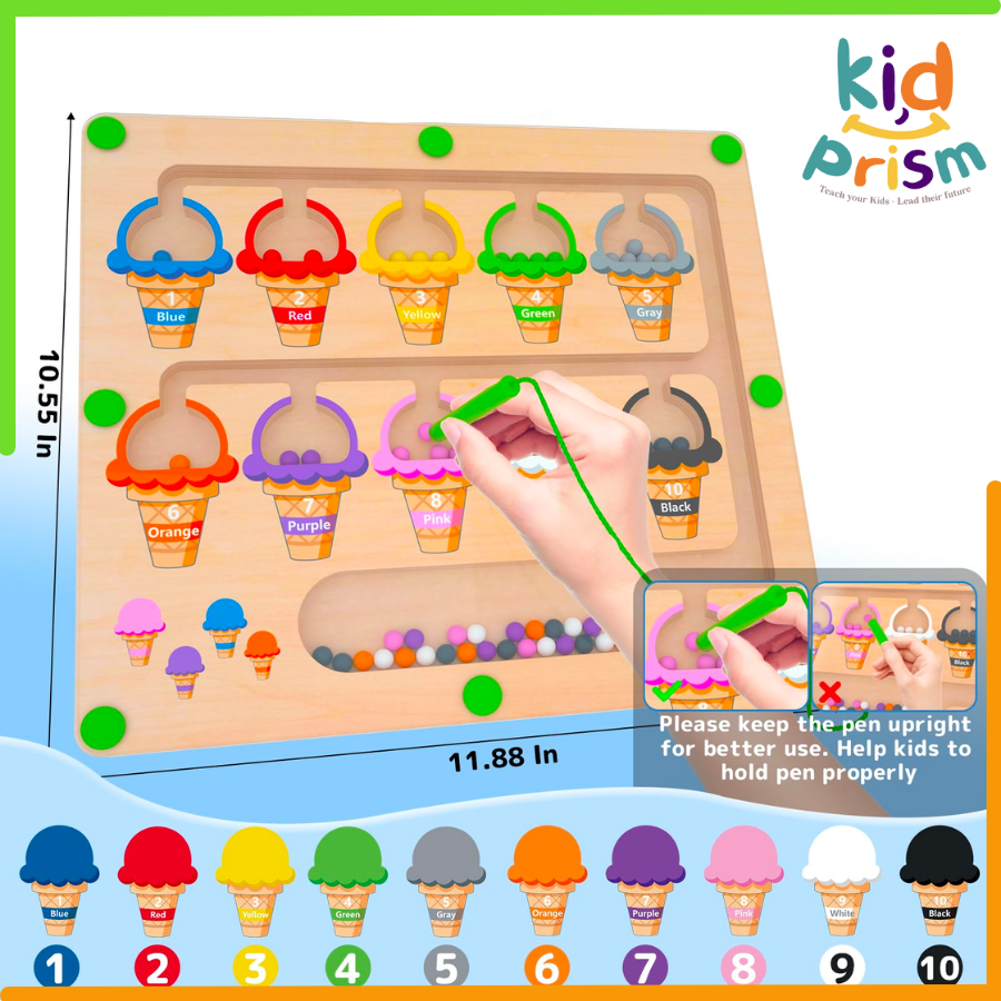 Bảng được thiết kế đầy màu sắc với hình que kem, bố mẹ có thể dạy trẻ các màu sắc cơ bản thông qua việc dùng bút từ tính để di chuyển những viên bi nhỏ xinh vào đúng que kem có màu sắc tương ứng.