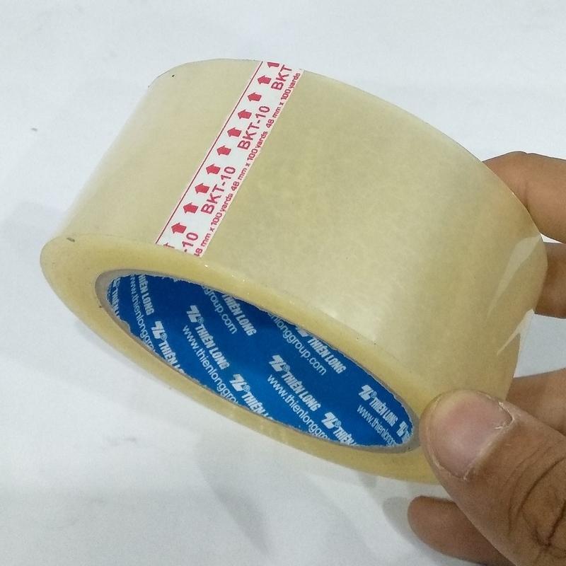 - Băng Keo Trong Thiên Long BKT10 (100yards) có độ bền cao, dính tốt trên nhiều bề mặt vật liệu và chịu được nhiệt độ từ 5 - 60 độ C. Băng keo có màu