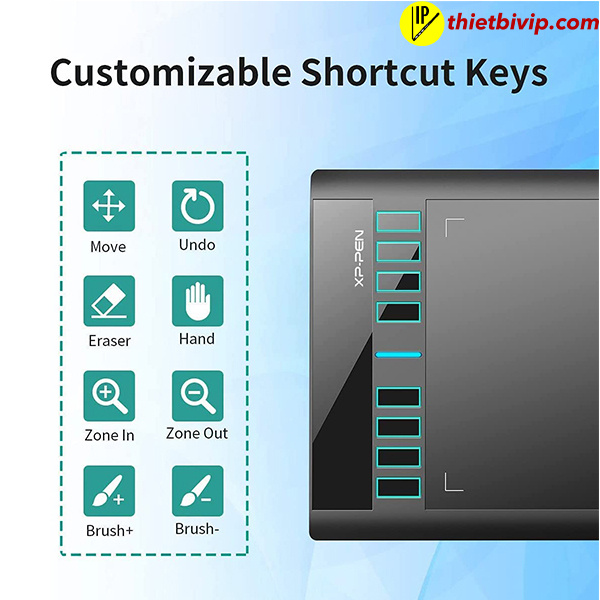 Khả năng sáng tạo rộng mở với XP-Pen Star03, bảng vẽ điện tử chuyên nghiệp 12 inch (10x6 inch). 8 phím tắt tùy chỉnh tính năng giúp thao tác nhanh chóng và tăng hiệu quả