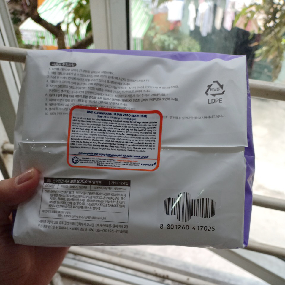 BVS KLEANNARA LILIAN SOOMSHIDA (BAN ĐÊM)(Size: 33 cm. Số lượng: 12 miếng/1túi)Sản phẩm với chiều dài 33cm với cánh trải rộng ra phía sau, chống tràn tối đa khi nằm và thay đổi tư thế,