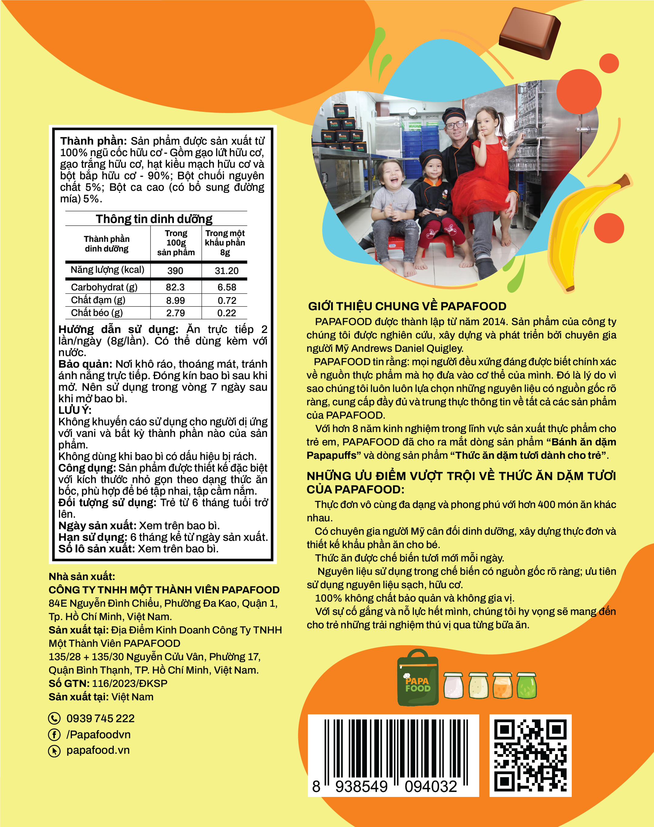 - Với hơn 8 năm kinh nghiệm trong lĩnh vực sản xuất thực phẩm cho trẻ em, PAPAFOOD đã cho ra mắt dòng sản phẩm "Bánh ăn dặm Papapuffs" và dòng sản phẩm "Thức ăn dặm tươi dành cho trẻ".