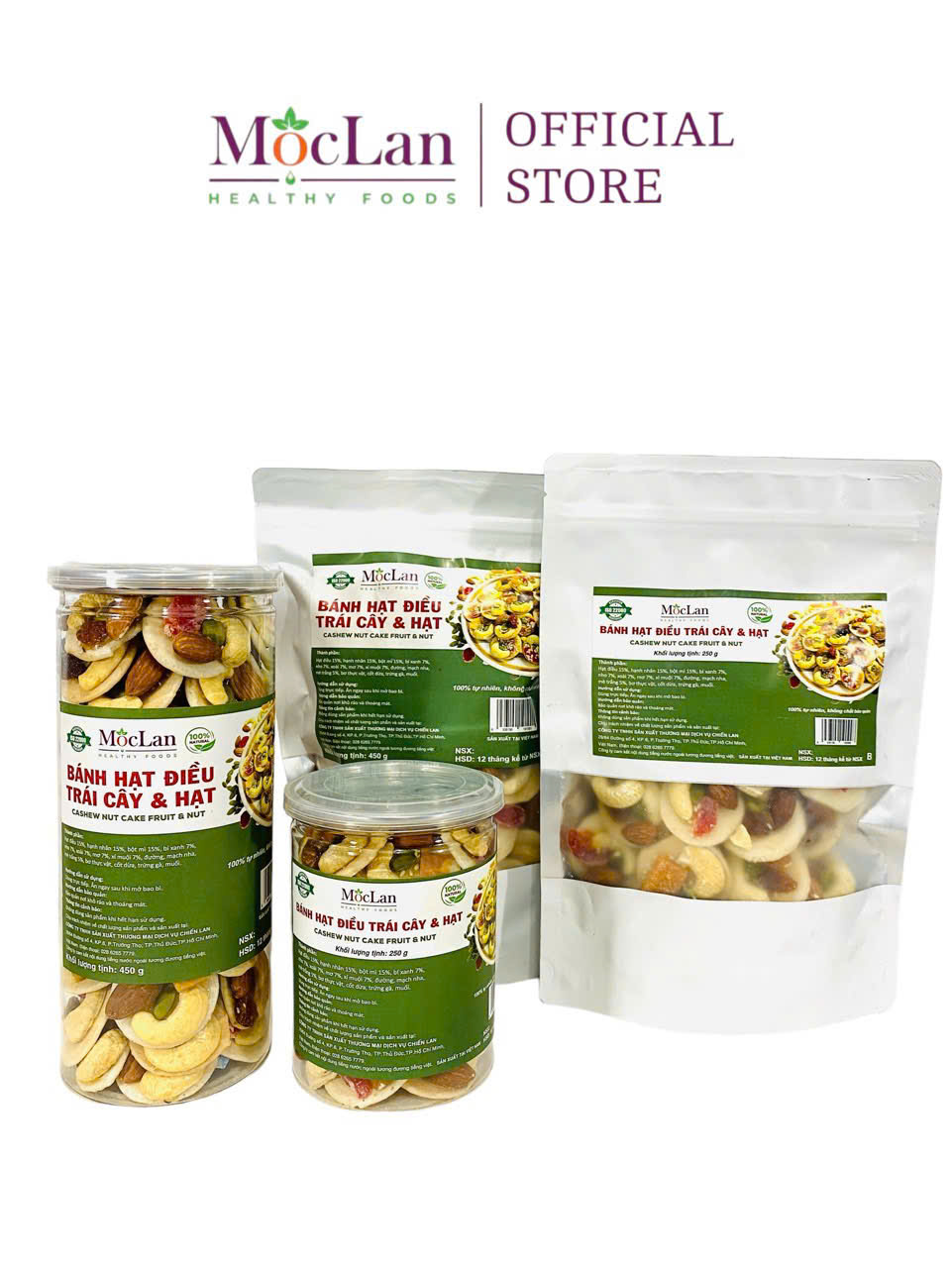 THÀNH PHẦN: hạt điều, hạnh nhân, hạt bí, nho khô, bột mì, xoài, mơ, xí muội, mè rang, mạch nha CÔNG DỤNG: