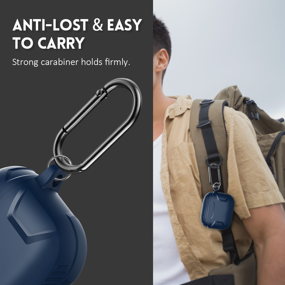 - Dễ dàng mở nắp trên và khóa, đóng chặt và giữ chặt nắp khỏi rơi mọi lúc. - Móc khóa kim loại di động cho phép bạn mang theo AirPods một cách thuận tiện