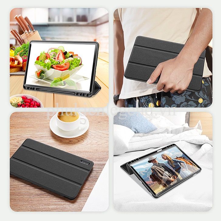 Bao da Dux Ducis Domo chính hãng (có khay đựng bút). là thiết kế mới với vẻ đẹp thời trang cao cấp cùng tính năng tiện dụng, an toàn bảo vệ toàn diện cho máy. Bao da Dux Ducis Domo rất đáng sở hữu bởi: Chất liệu nhựa TPU và da PU cao cấp độc đáo, lạ mắt, thân thiện với môi trường. Cảm biến thông minh tự động tắt mở khi đóng mở nắp bao da giúp tiết kiệm pin triệt để Đặc biệt ở phiên bản này, hãng Dux Ducis Osom thiết kế thêm khe cắm bút cảm ứng thuận tiện sử dụng ở bất cứ đâu, tránh quên hay thất lạc bút. Dựng máy với nhiều tư thế.