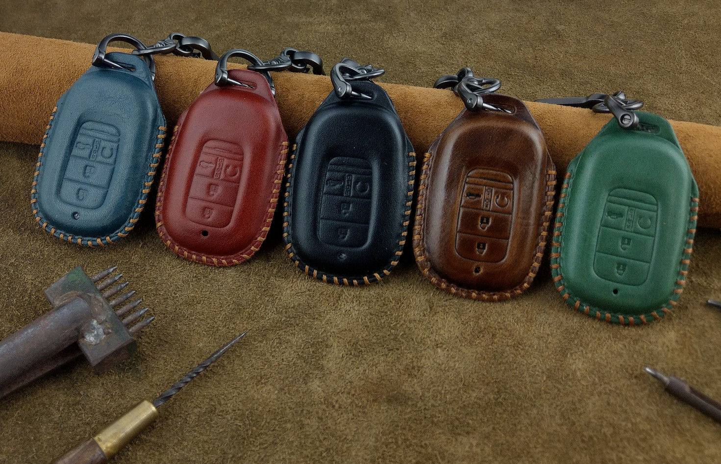 Bao da chìa khoá Honda CRV Civic 2025 da bò togo đen chế tác thủ công #baodachiakhoa #leathercraft