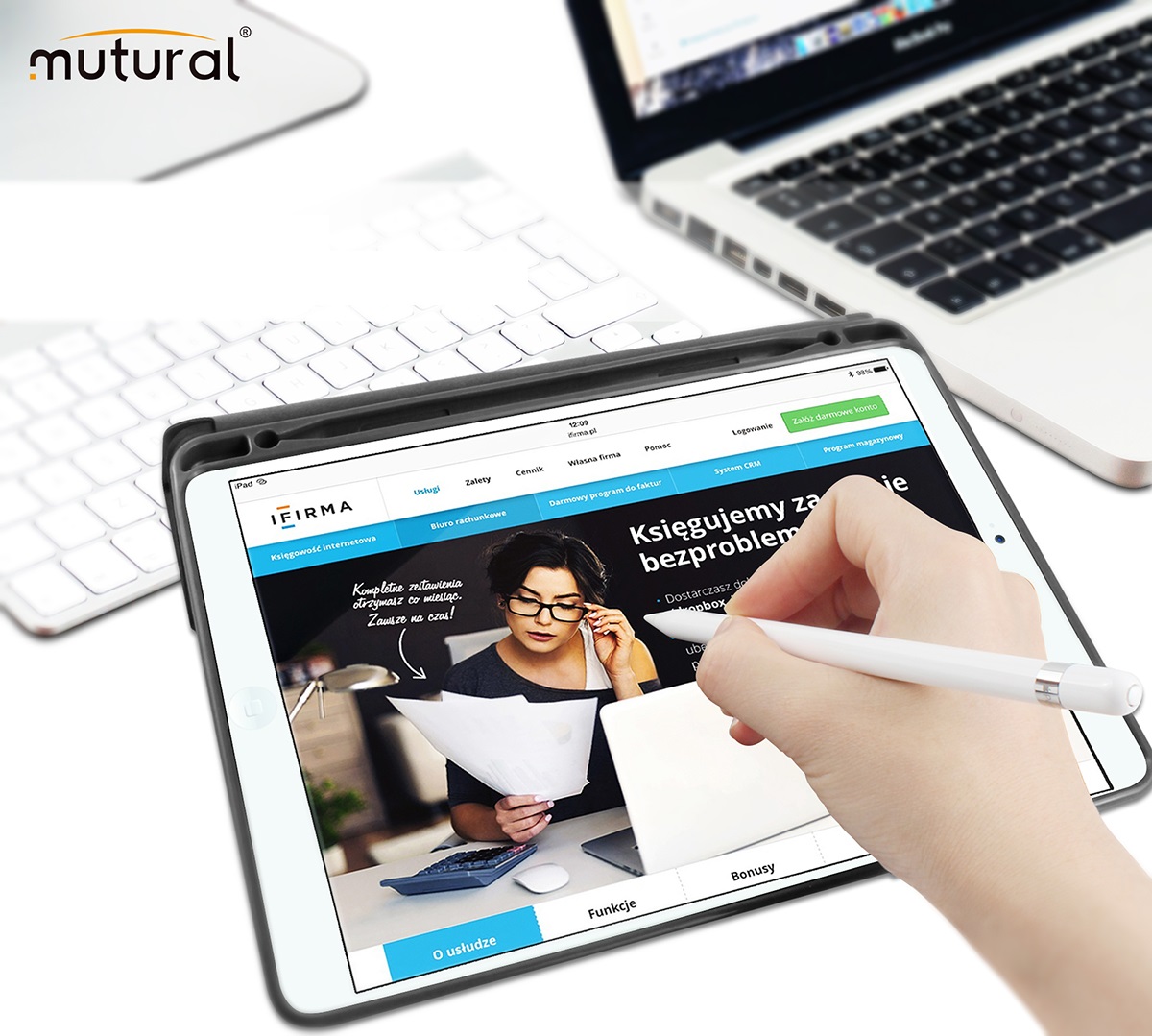 Chiếc iPad thế hệ thứ 7 cùng màn hình 10.2 inch Retina display Mới đây, trong buổi ra mắt sản phẩm mới của mình thì Apple đã giới thiệu đến người dùng mẫu iPad mới nhất của năm 2019. Máy sẽ có màn hình 10.2 inch cùng với đó là khả năng năng chơi game vô cùng tuyệt vời. Nếu đang tìm kiếm cho mình một mẫu máy tính bảng hiện đại nhưng lại sở hữu nhiều tính năng mới nhất hiện nay thì Apple iPad 10.2 2019 sẽ là một lựa chọn không thể tốt hơn dành cho bạn. Bao da Ipad Air 10.2 2019 Mutural có khay để bút cao cấp (New 2019) – Sản phẩm dành riêng cho Ipad 10.2 Thương hiệu Mutural là thương hiệu bao da cao cấp nổi tiếng đến từ Hongkong. Sản phẩm bao da Ipad 10.2 Mutural có kèm khay đựng bút tiện lợi sử dụng cho Apple Pencil hoặc các loại bút Adonit tương đương giúp bạn sử dụng tiện lợi mang theo Ipad và bút cảm ứng cùng lúc Khay đựng Ipad được làm bằng TPU mềm giúp dễ tháo lắp, mặt dưới của ốp lưng được thiết kế với các rãnh thoát nhiệt giúp bạn yên tâm sử dụng Ipad với bao da mà không lo nóng máy.