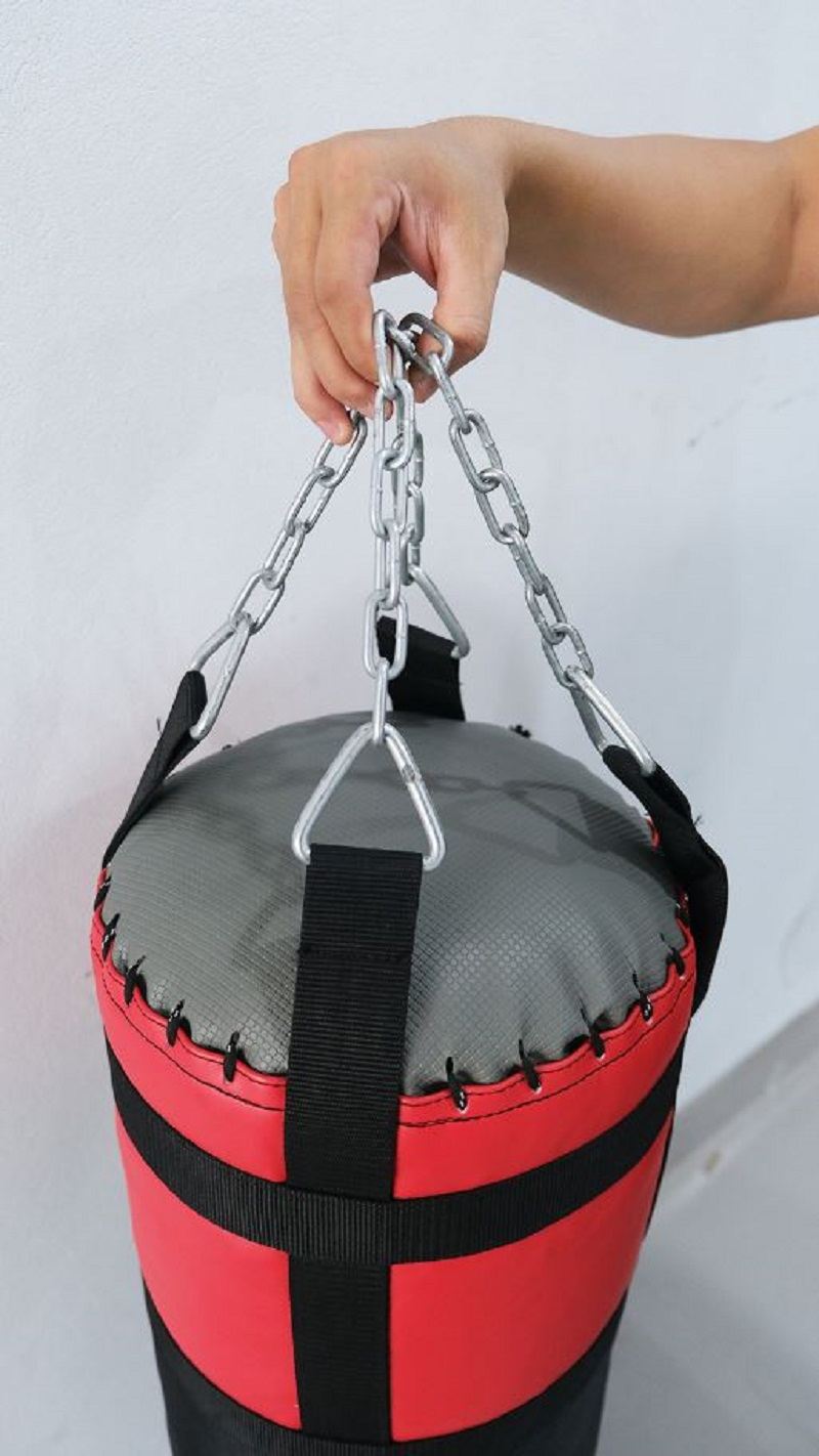 Bao đấm bốc có dây treo chắc chắn, bạn có thể treo bao đấm tập võ ở bất cứ nơi nào.