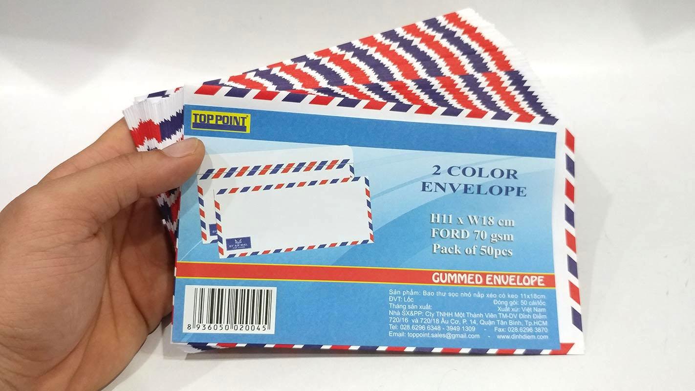 Bao Thư Sọc Nhỏ Nắp Xéo Có Keo Bao Thư gây ấn tượng bởi thiết kế sọc nhỏ đỏ - xanh xinh xắn. Sản phẩm được sản xuất tại Việt Nam, không chứa các thành