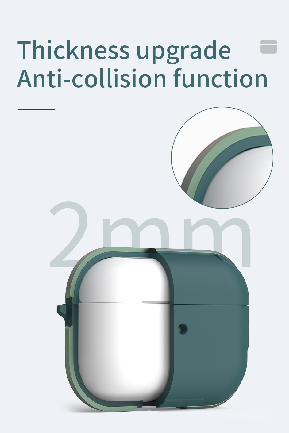 - Cấu tạo vỏ 2 lớp với lớp ngoài là nhựa cứng, lớp bên trong là nhựa TPU mềm dẻo giúp bảo vệ airpods hoàn hảo, tỷ lệ va chạm làm hỏng airpods giảm 99%
