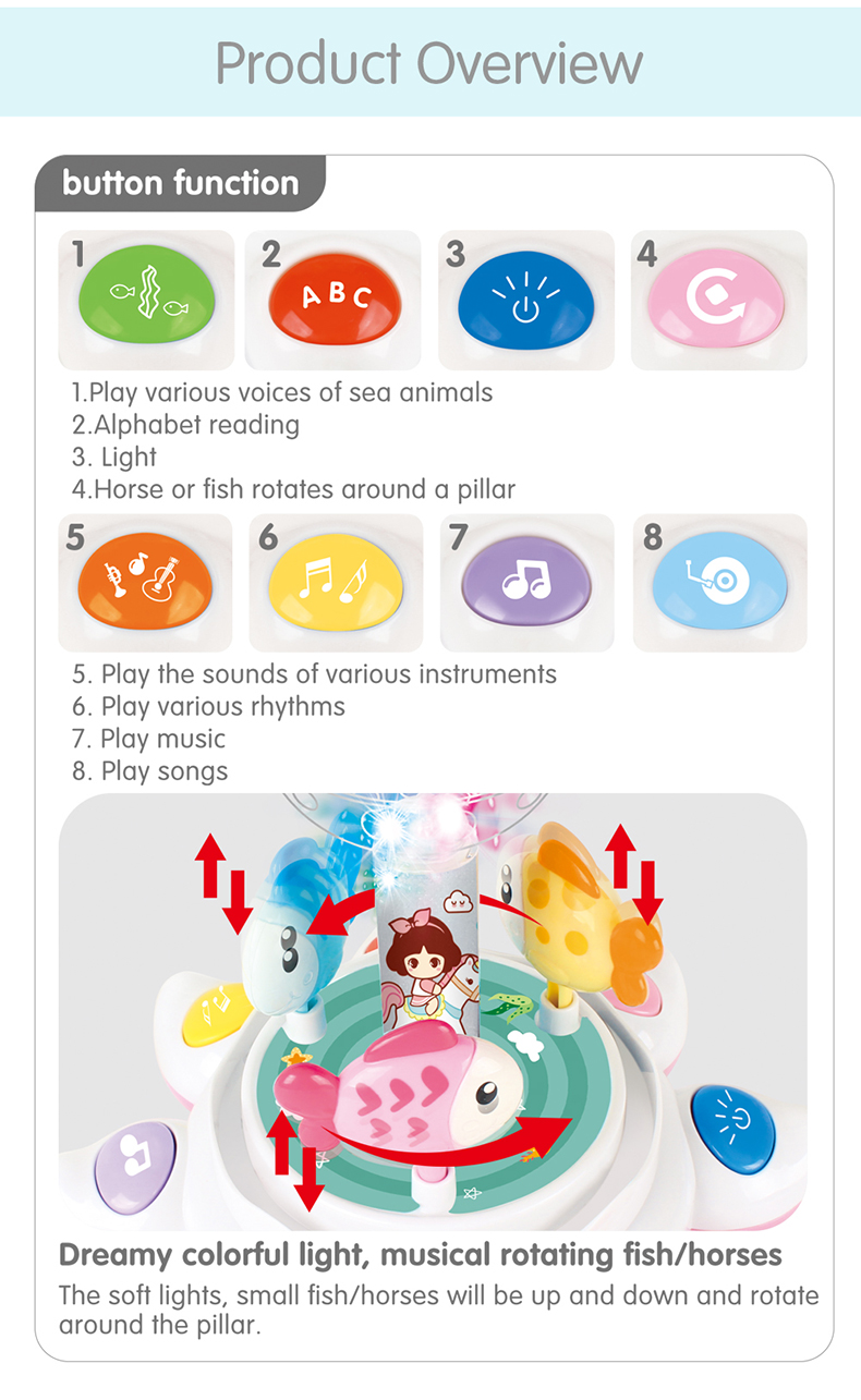 Xe học tập đa năng thông minh: Chạy điện tự động, di chuyển linh hoạt. Phát triển nhận thức âm nhạc kích thích trí tuệ sớm. Song ngữ Anh - Trung giúp bé học ngôn