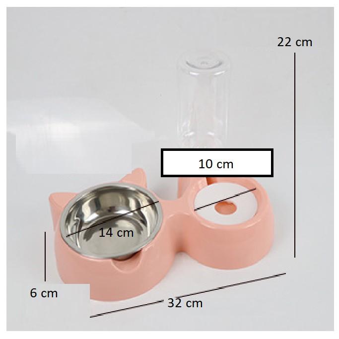 ✨Bát ăn đôi hình tai mèo lõi inox kèm bình nước tự động cho chó mèo