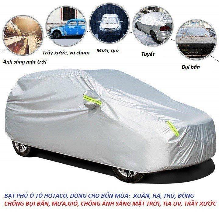 - Bạt phủ ô tô loại tốt, mặt ngoài tráng bạc 8D chống nóng, chống cháy, chống mưa và dễ lau chùi!