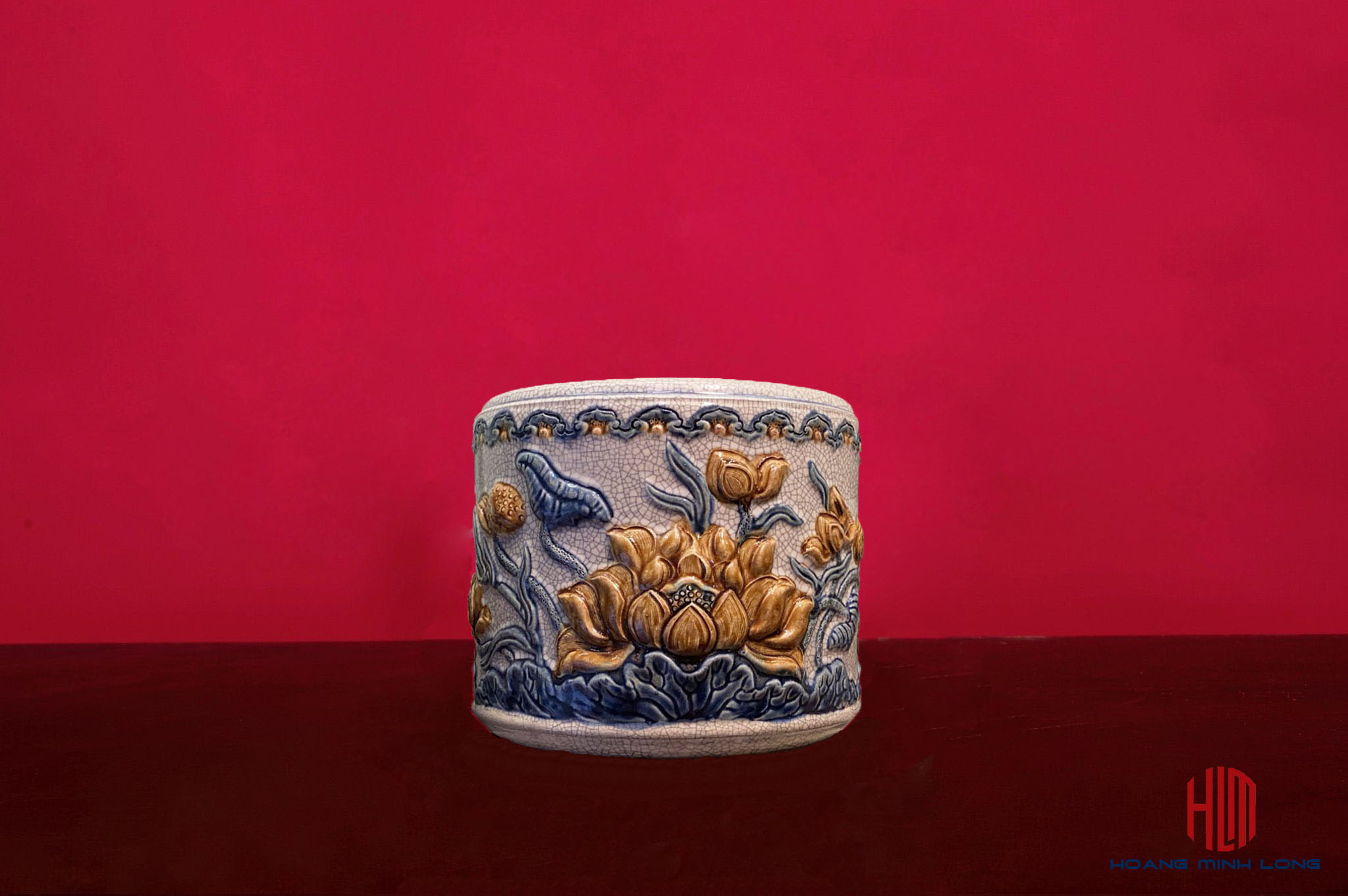 Bát hương men rạn đắp nổi Song Long Chầu Nguyệt vẽ vàng 24k - Gốm 10 (ĐT 0812221010) - Gom10.vn