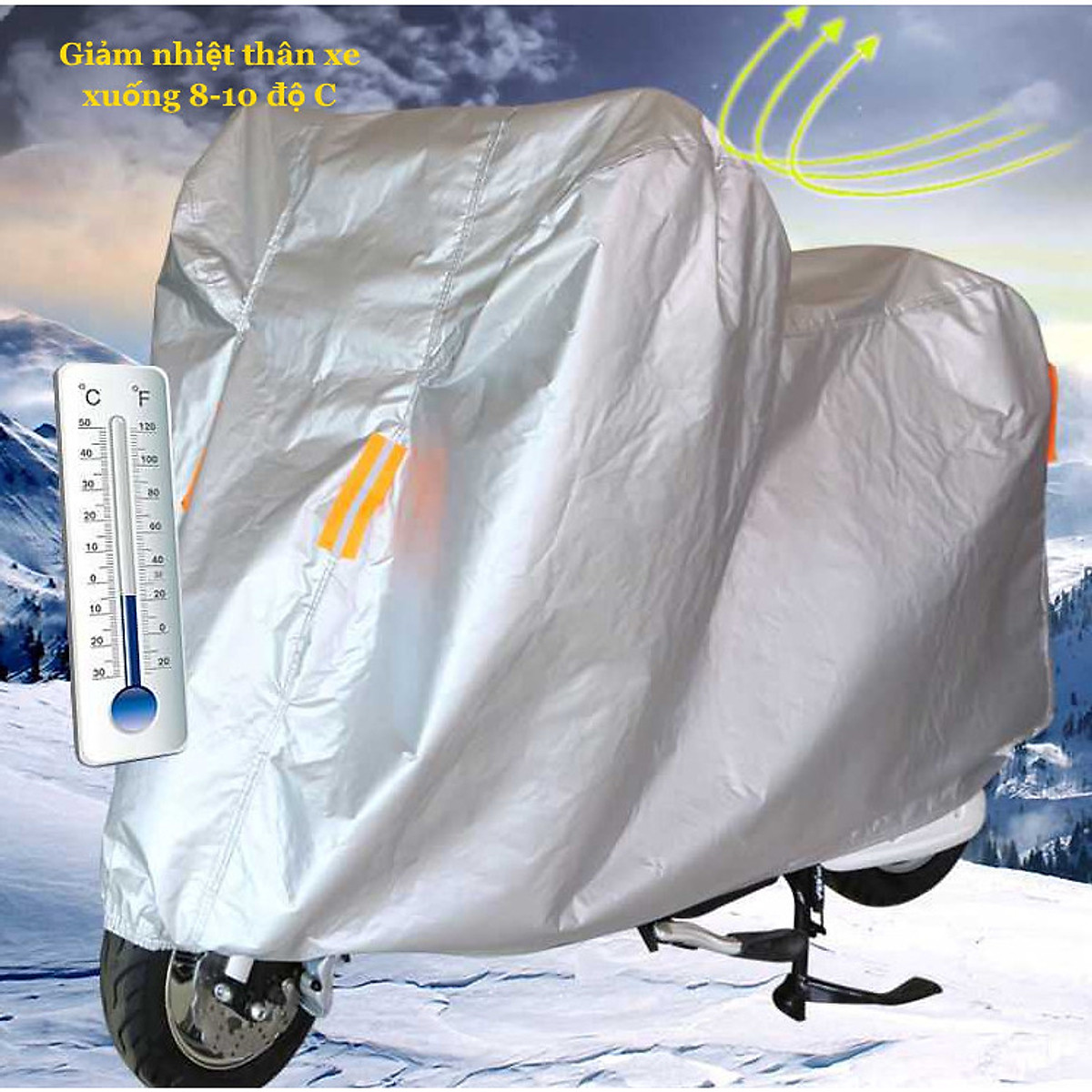 BẠT PHỦ XE MÁY PHẢN QUANG TRÁNG NHÔM CÁCH NHIỆT CAO CẤP, BẠT PHỦ XE MÁY BỐN MÙA - HÀNG CHÍNH HÃNG Bạt phủ bạc trùm che chắn nắng xe máy vải cao cấp phản