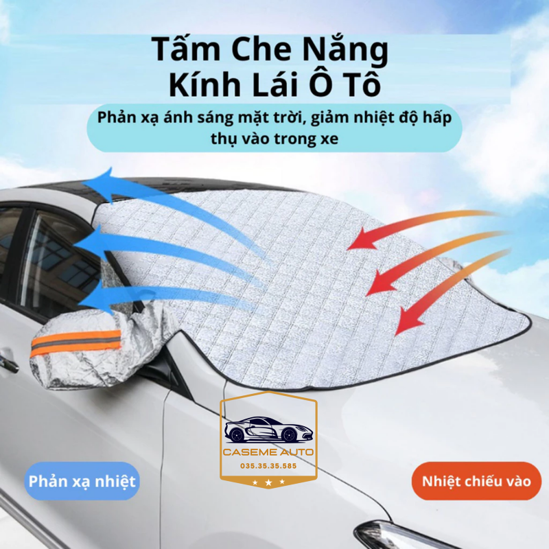 ✨Bạt Phủ Kính Lái Ô Tô Chống Nắng 4 Lớp Phản Quang, Tráng Nhôm Cao Cấp, Gắn Nam Châm, Có Tai Che Gương Chống Nóng