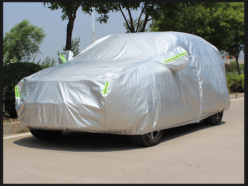 Bạt phủ xe ô tô 7 chỗ 3 lớp tráng nhôm cách nhiệt, chống nóng, chống thấm, chống bụi bẩn - Bạt phủ xe có mặt ngoài là chất liệu vải PEVA tráng nhôm phản