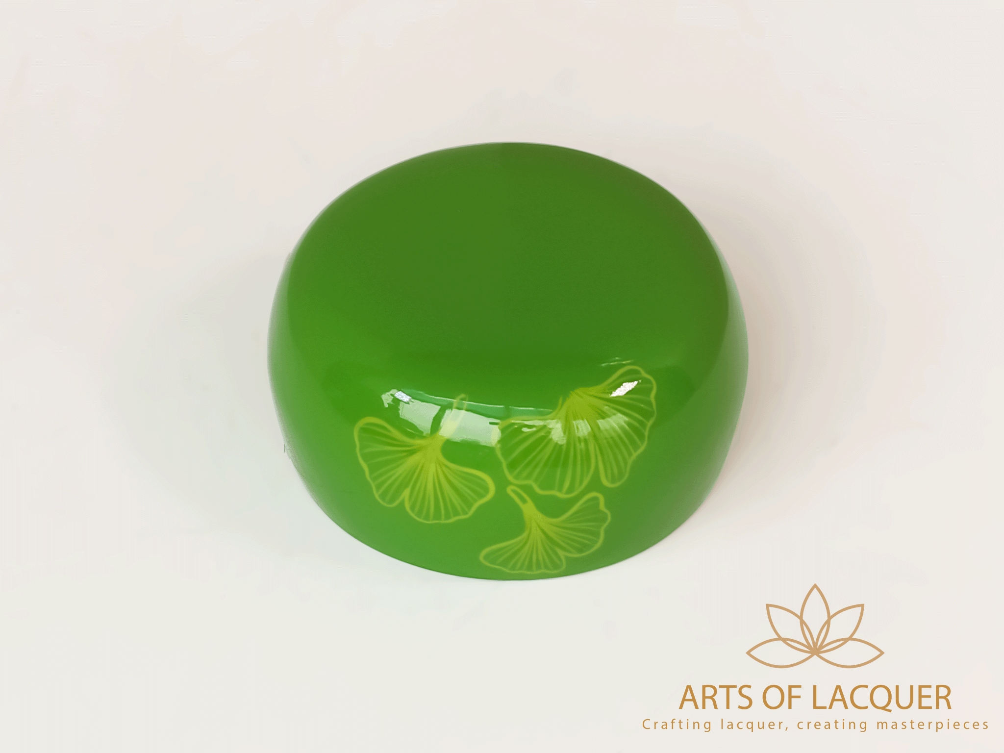 ✨Bát Sơn Mài Xanh Lá Cây Họa Tiết Lá Bạch Quả