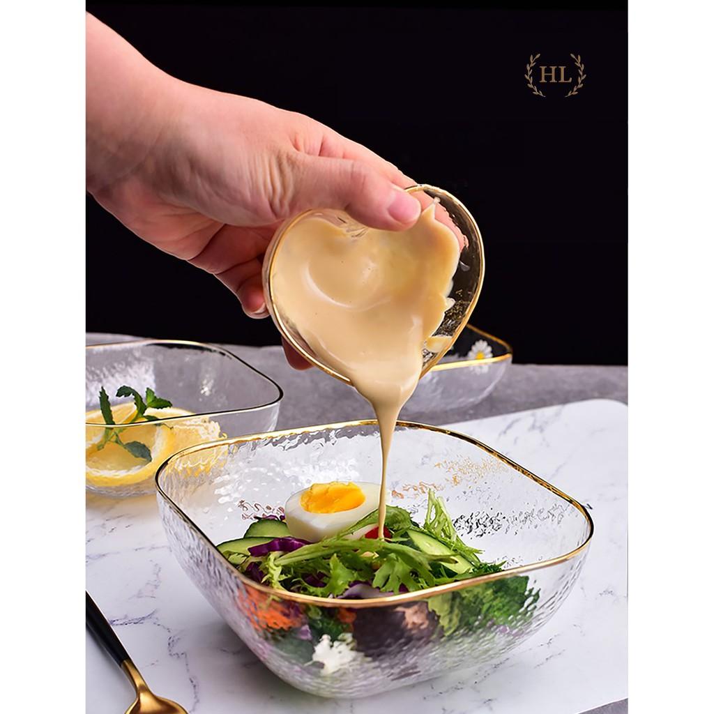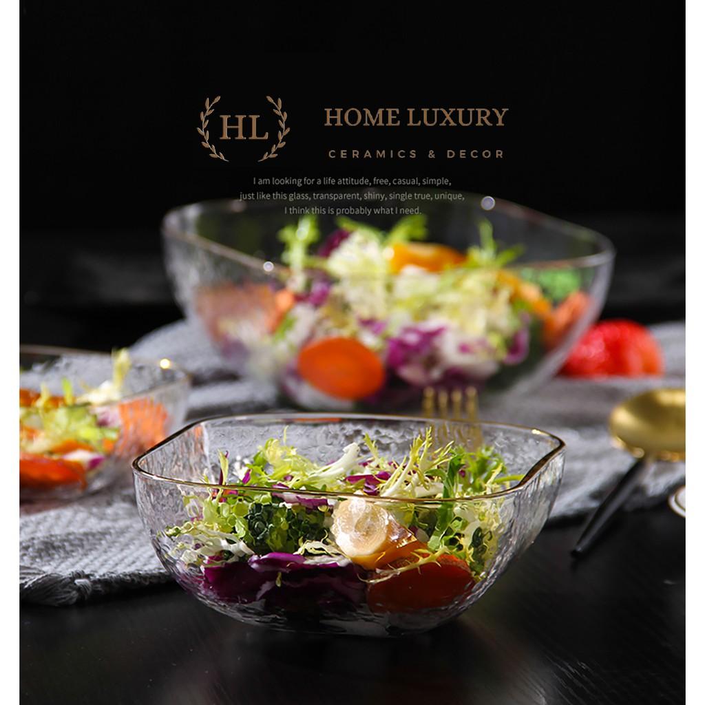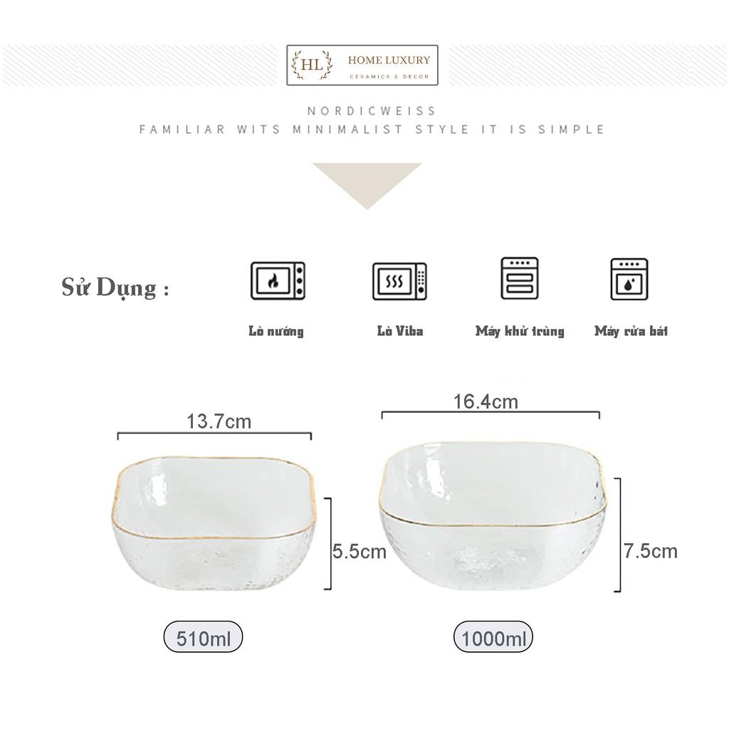 ✨BÁT THỦY TINH VUÔNG DECOR KẺ VÀNG KIM CAO CẤP | BÁT THỦY TINH SẦN CAO CẤP KIỂU HOME LUXURY | HÀNG CÓ SẴN | 2 DUNG TÍCH
