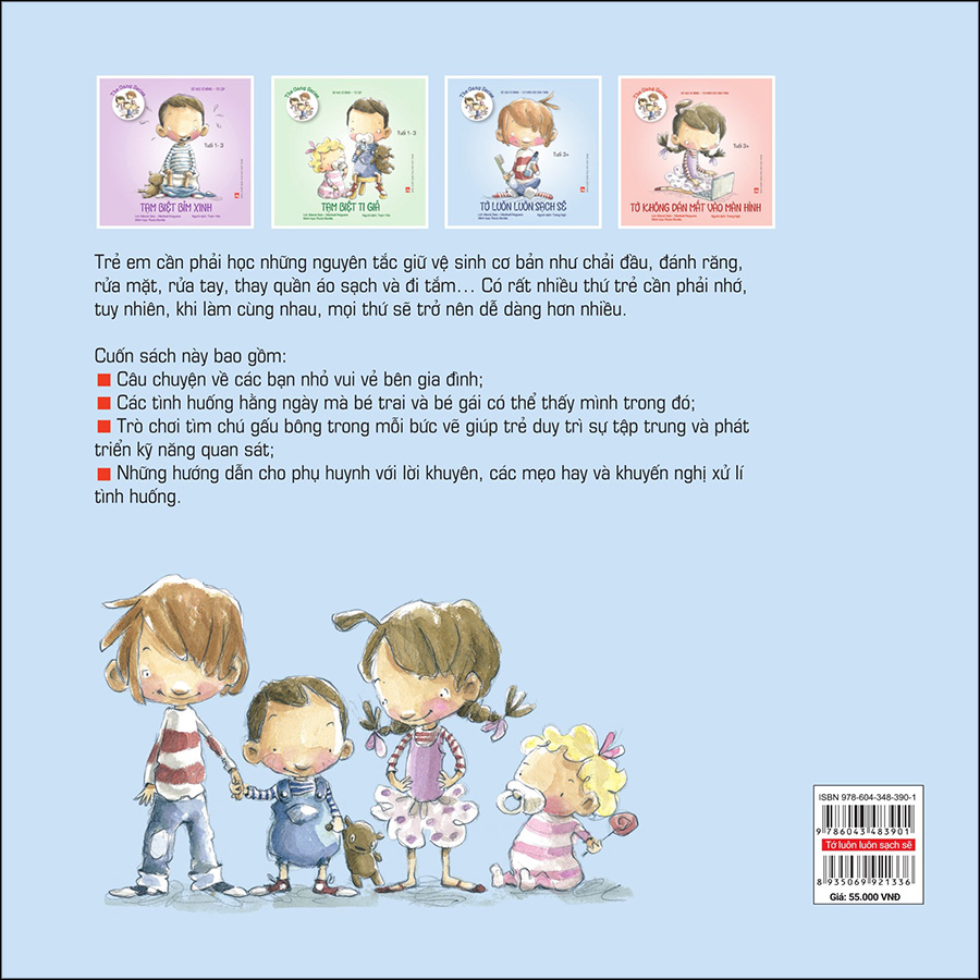 Bé Học Kĩ Năng – Tự Chăm Sóc Bản Thân – Tớ Luôn Luôn Sạch SẽLời nói đầuTrẻ em cần phải học những nguyên tắc giữ vệ sinh cơ bản như chải đầu, đánh răng, rửa mặt, rửa tay, thay quần áo sạch và đi tắm....