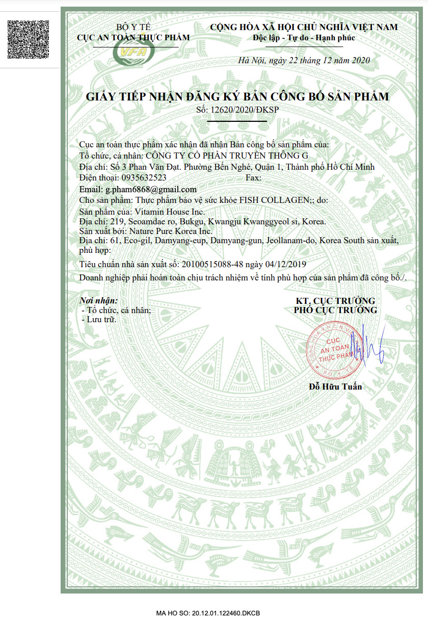 hạn sử dụng: 3 năm Thành phần tạo nên sự vượt trội. Marine Collagen: được điều chế từ cá biển sâu giữ vai trò chủ đạo kết hợp với vitamin C và kẽm sinh