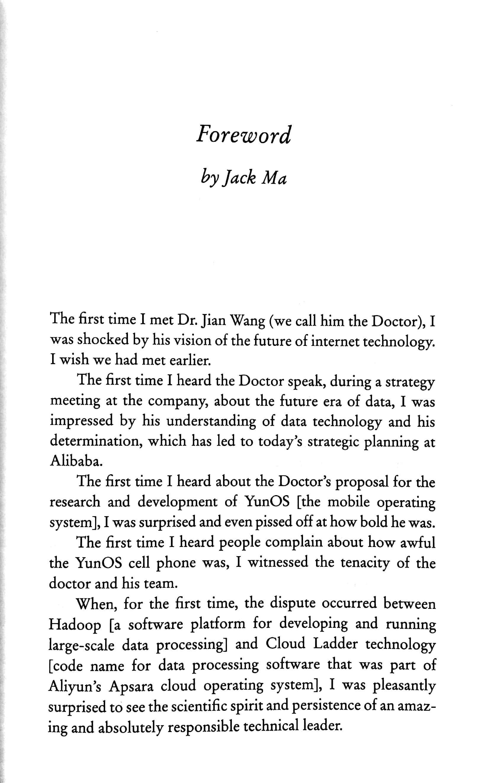 This moment will be as transformative for humanity as Henry Ford's production line. Data is changing the nature of business. Computing is reshaping the economy. The cloud will help us do things we could never do before, at scales that were previously impossible. It will reshape our vision of the world, as electrification once did and, more recently, the transition from analog to digital. While telling the story of Alibaba's breakthroughs and the development of his own understanding of the internet, Jian Wang's visionary book lays out the implications of this shift and how to think about being online.