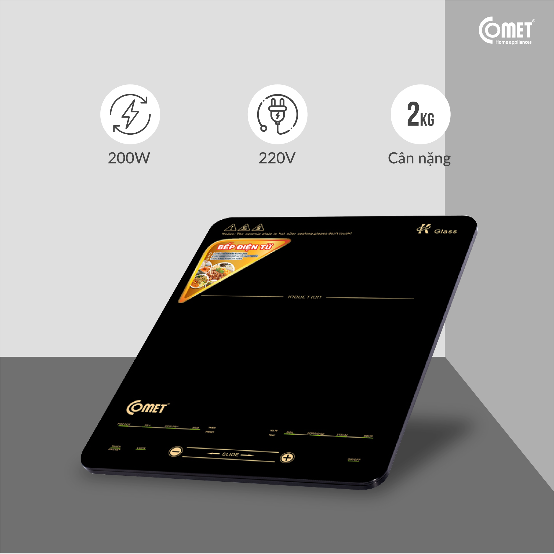 Thiết kế siêu mỏng, tiết kiệm không gian với bề mặt gốm thủy tinh chất lượng cao Kích thước nhỏ gọn nhưng sở hữu hiệu suất nấu vượt trội Sử dụng đa năng – Từ