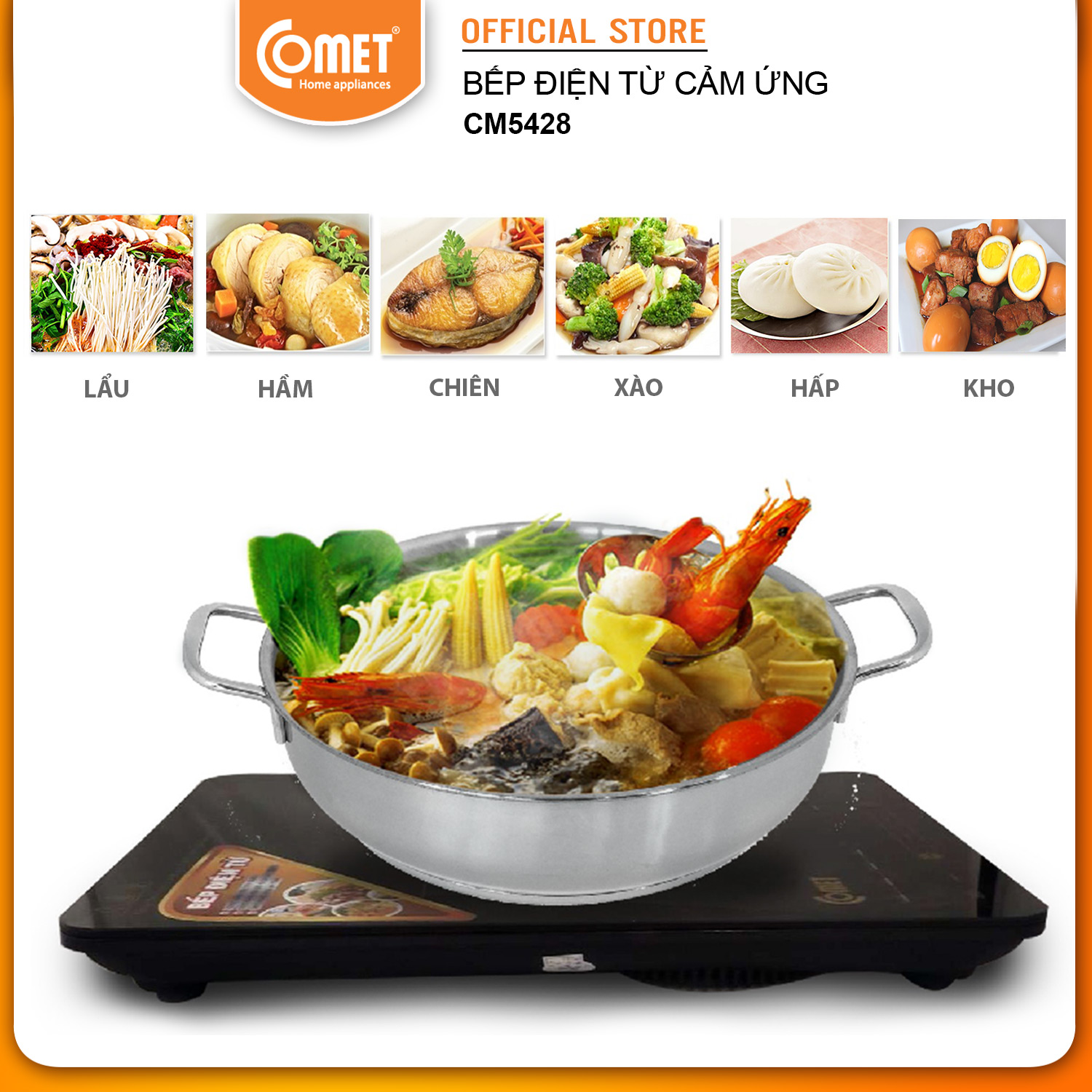Mô tả sản phẩm 5 chế độ nấu tự độngBếp có các chế độ nấu là chiên, nấu lẩu, đun nước, hấp, nướng, bạn chọn một trong các chế độ này để chế biến món