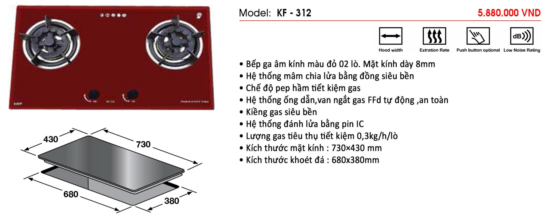 Aha Bếp - [ahabep.com] - BẾP GAS ÂM KAFF KF-312